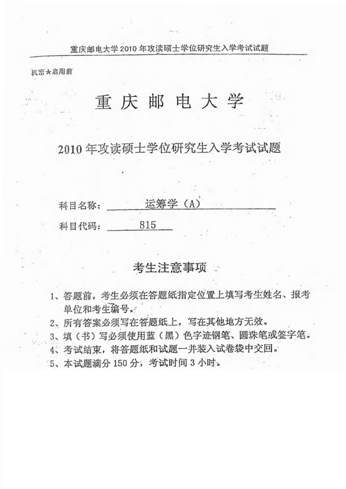 重庆邮电大学816运筹学2010年真题A卷