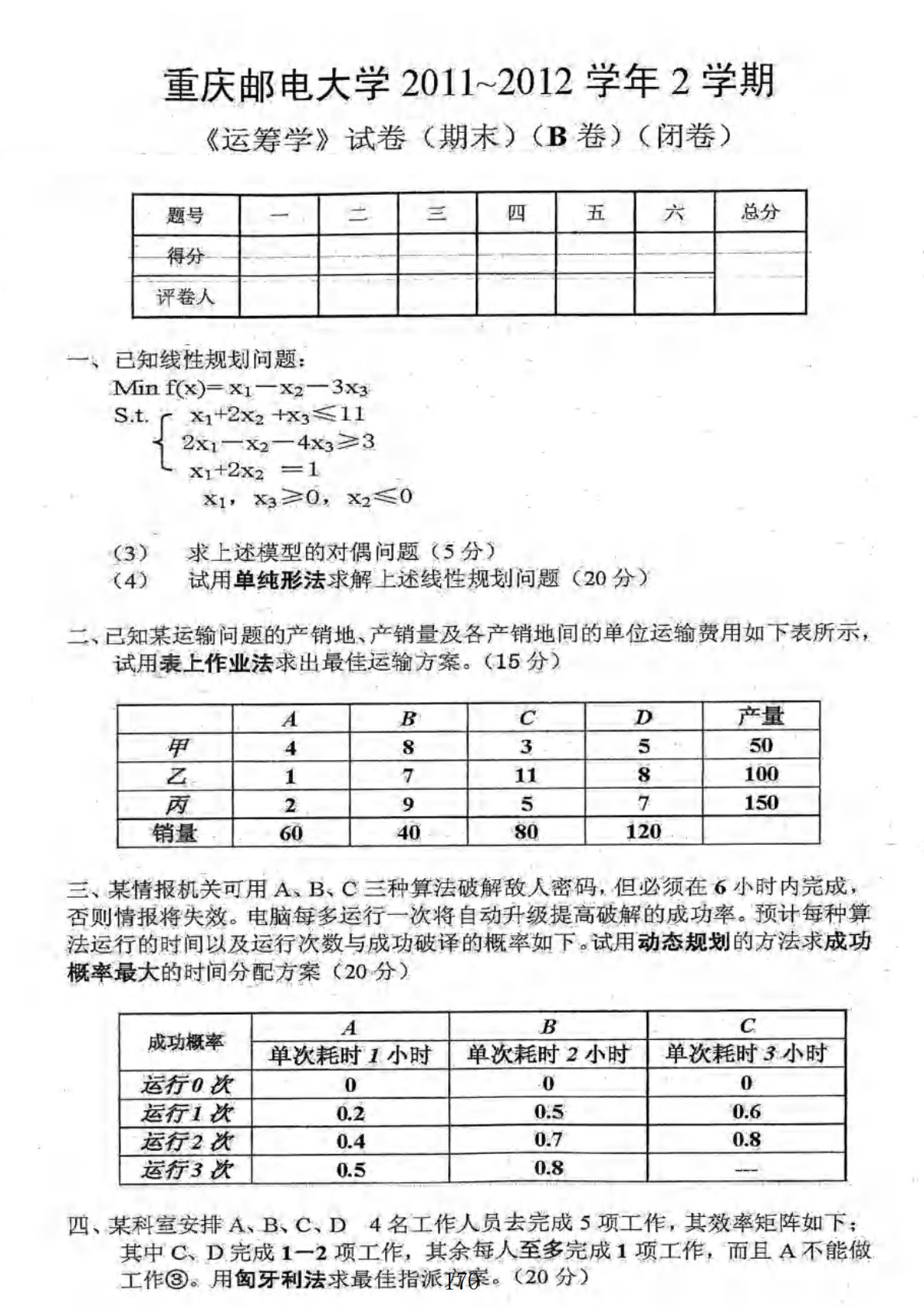 重庆邮电大学816运筹学2011-2012年期末题B卷