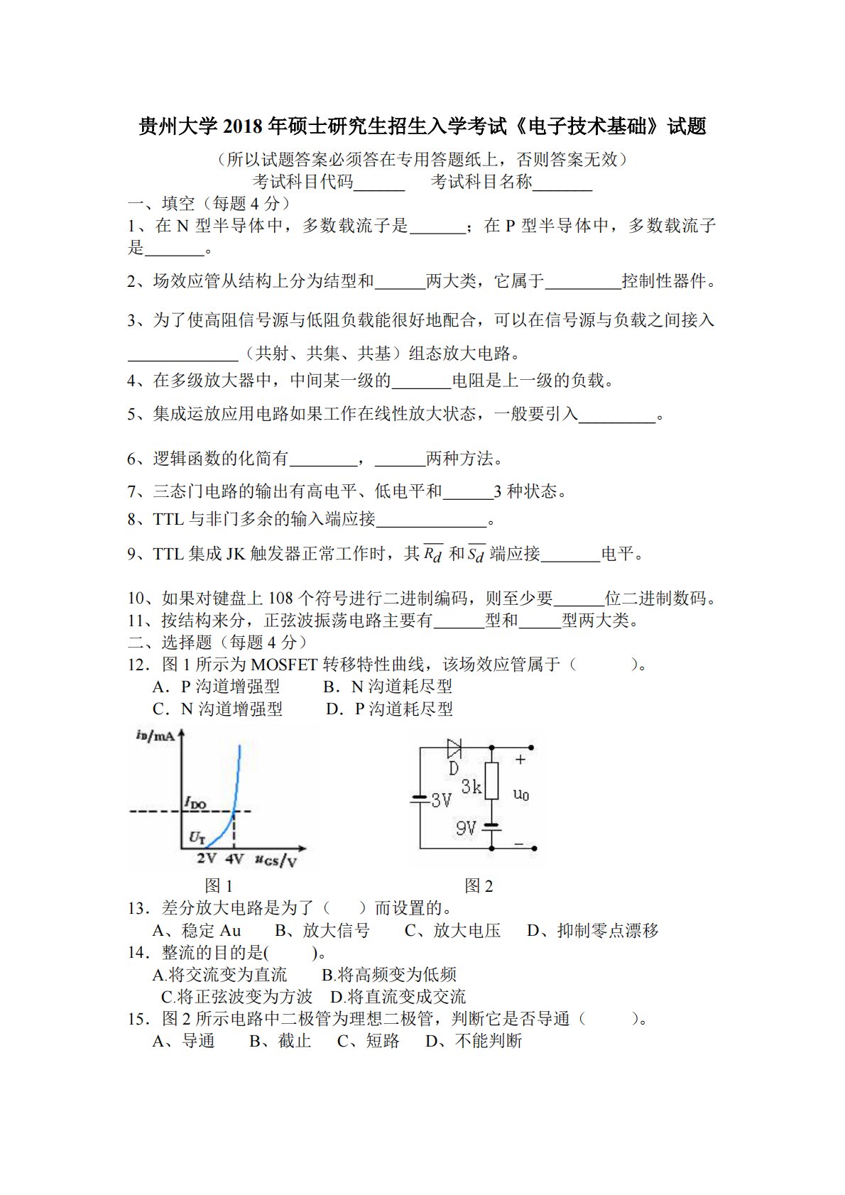 贵州大学834电子技术2018年真题