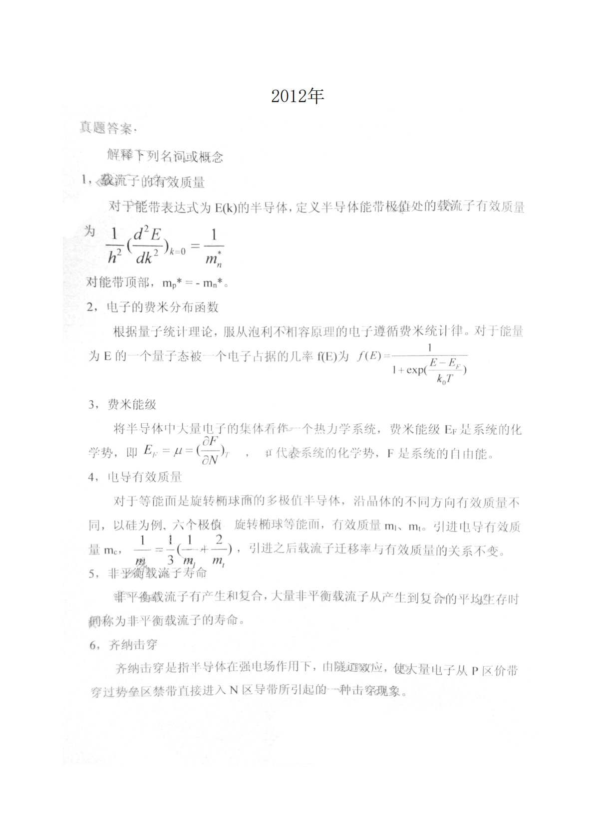 中国科学院大学804半导体物理考研2012年真题答案解析