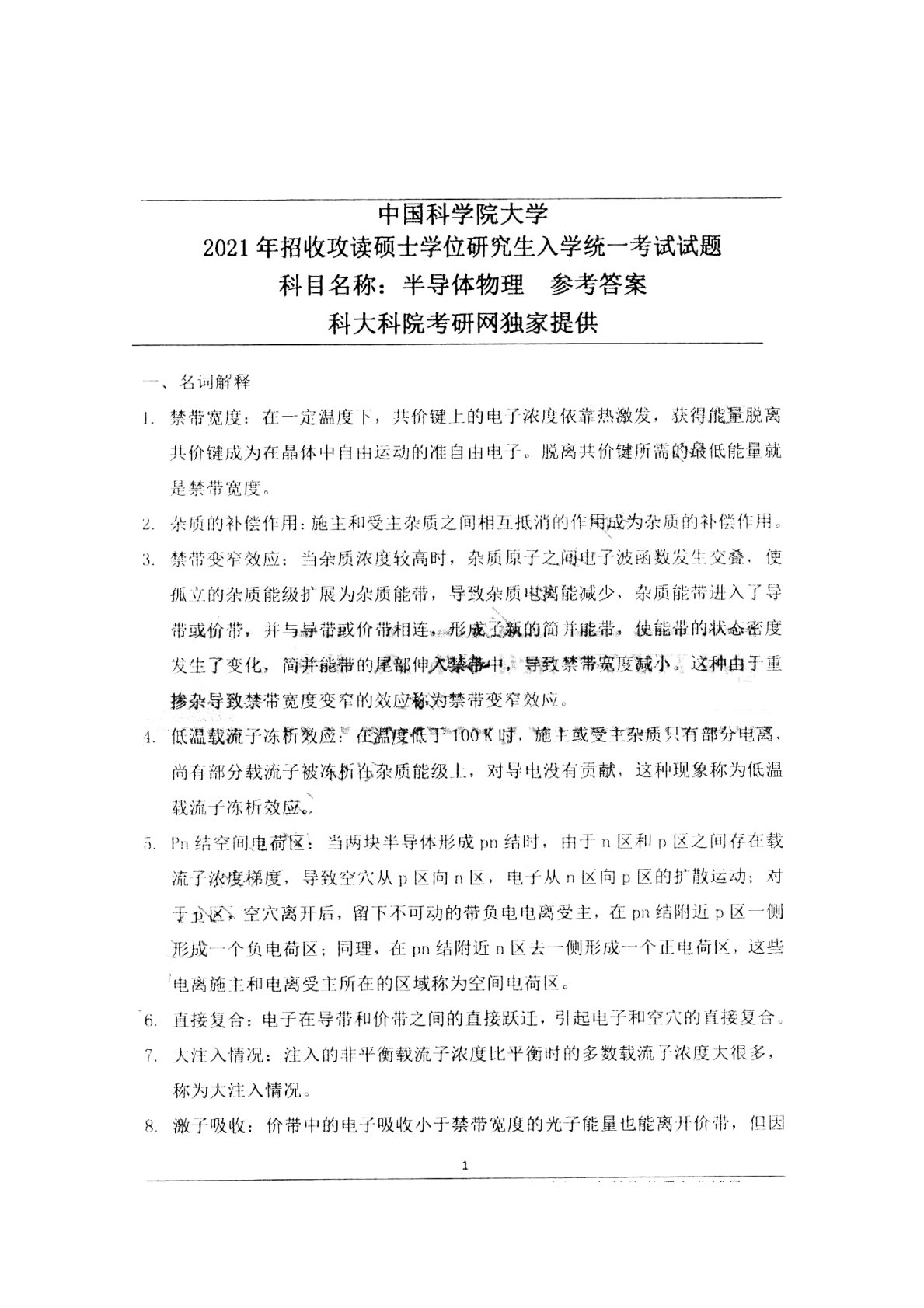 中国科学院大学804半导体物理2021年真题答案