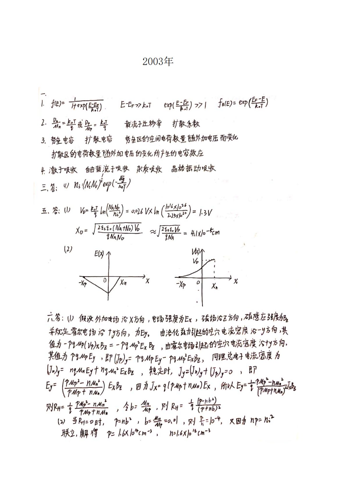 中国科学院大学804半导体物理2003年真题答案解析手写版