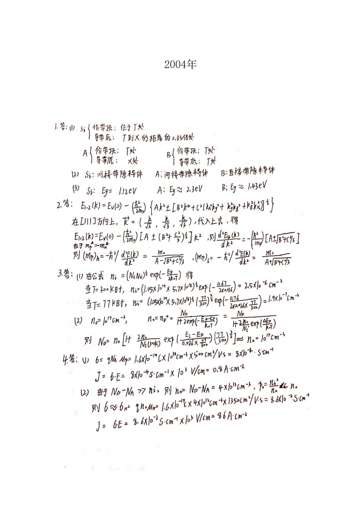 中国科学院大学804半导体物理2004年真题答案解析手写版