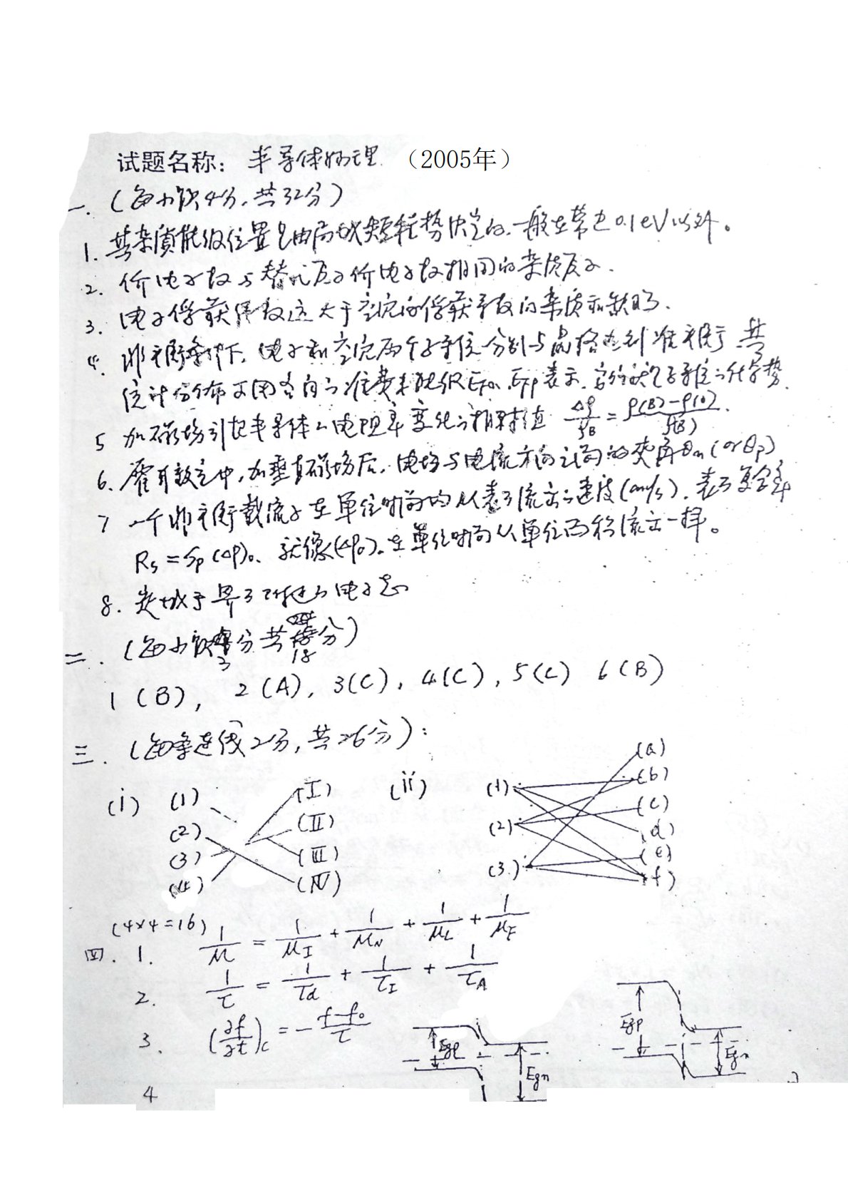 中国科学院大学804半导体物理考研2005年真题答案解析手写版