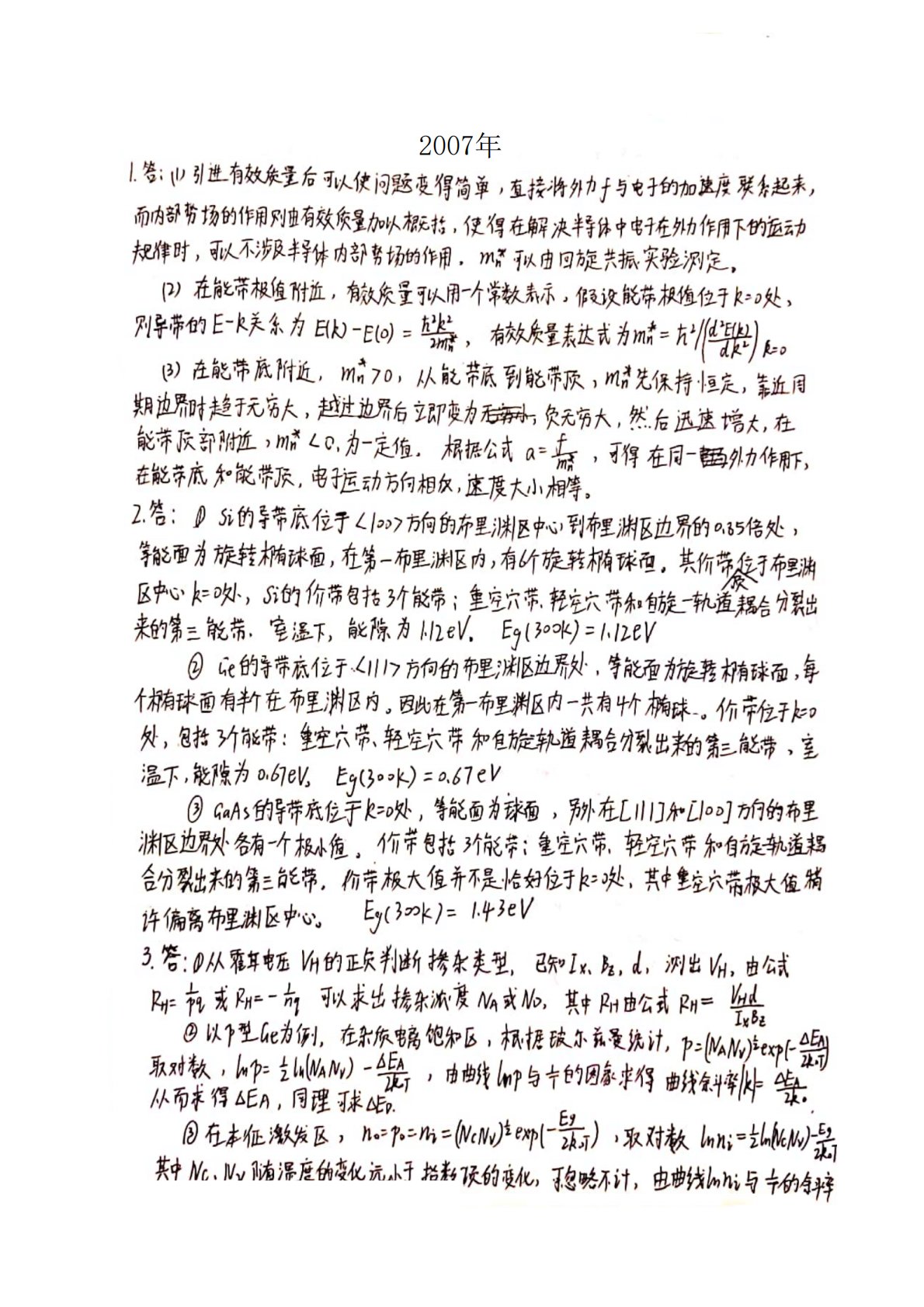 中国科学院大学804半导体物理考研2007年真题答案解析手写版