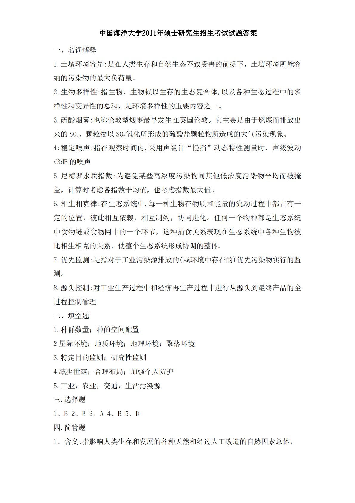 中国海洋大学933环境学2011年真题答案