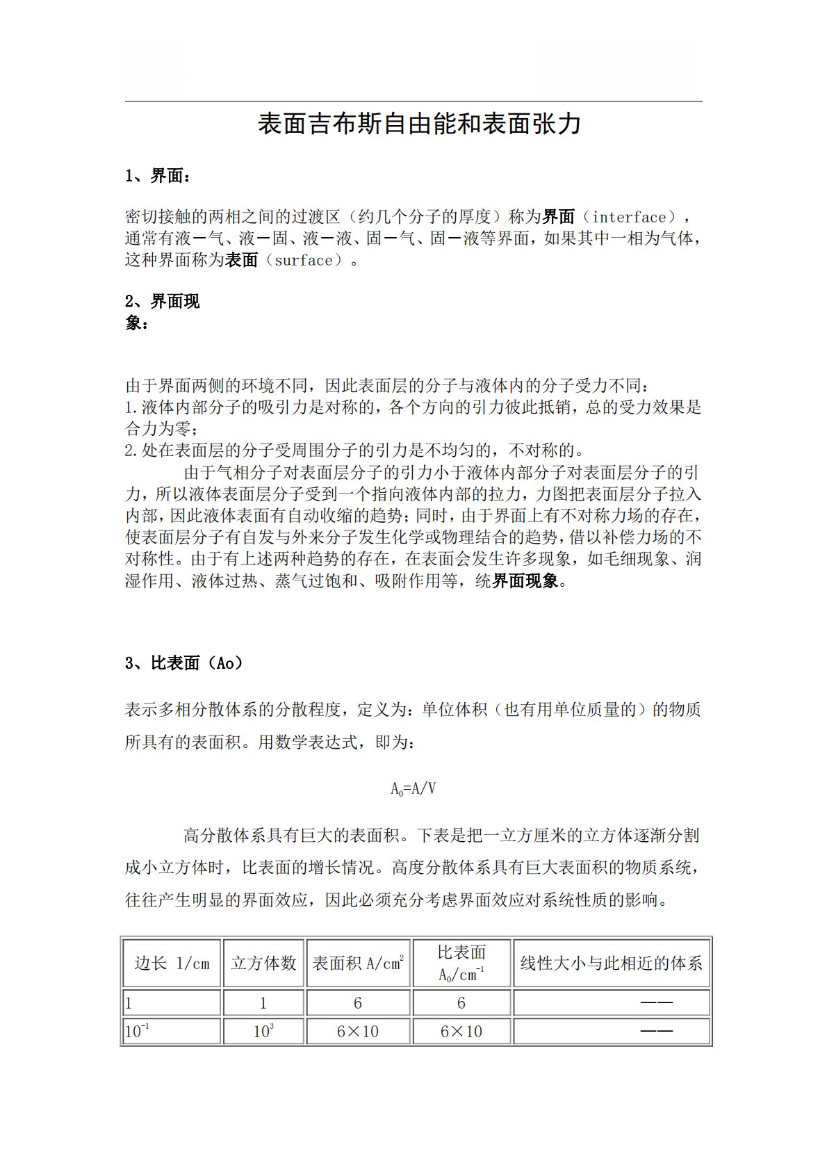 中国科学技术大学621物理化学专题讲解-表面吉布斯自由能和表面张力