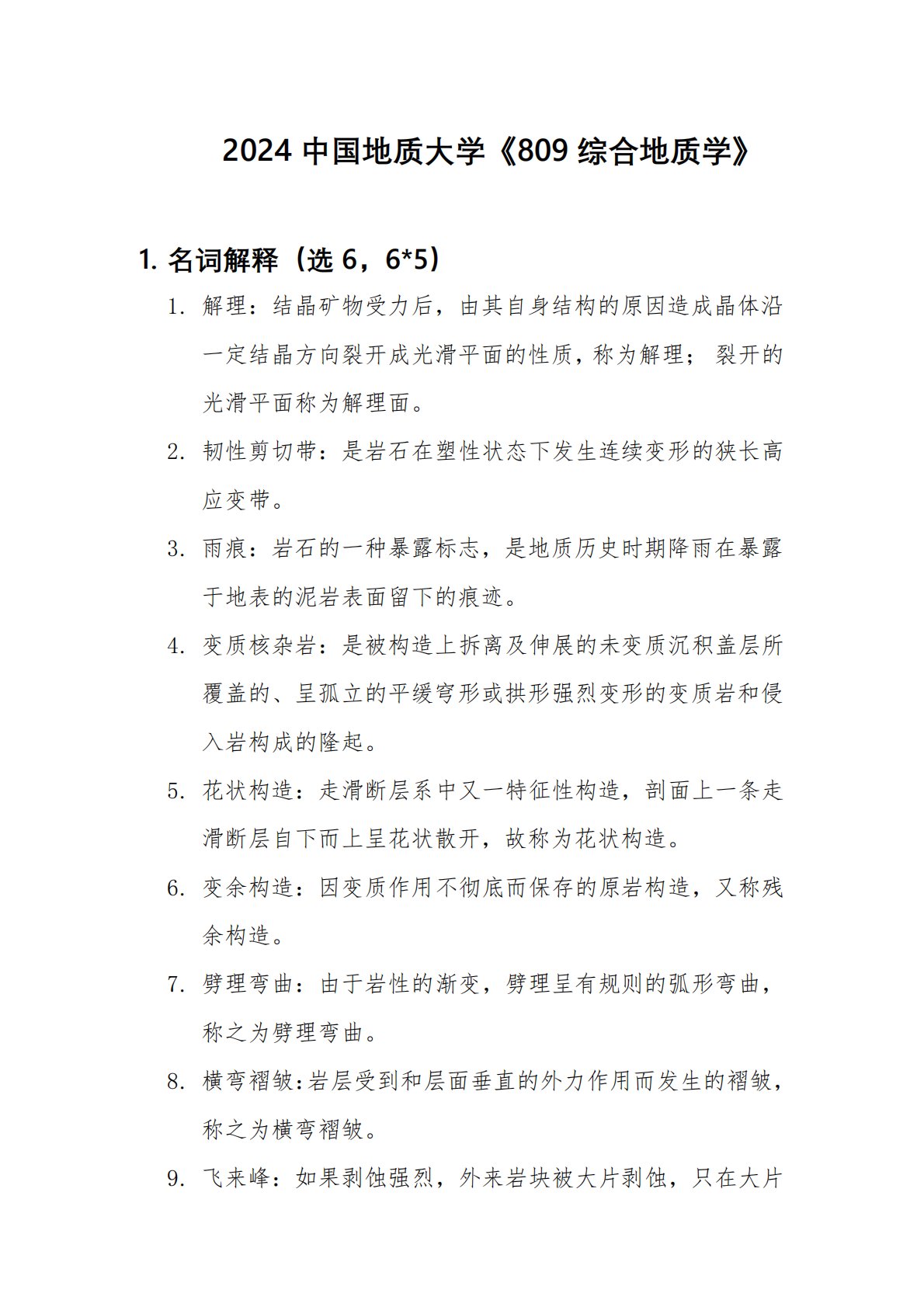 中国地质大学(北京)809综合地质学2024年真题