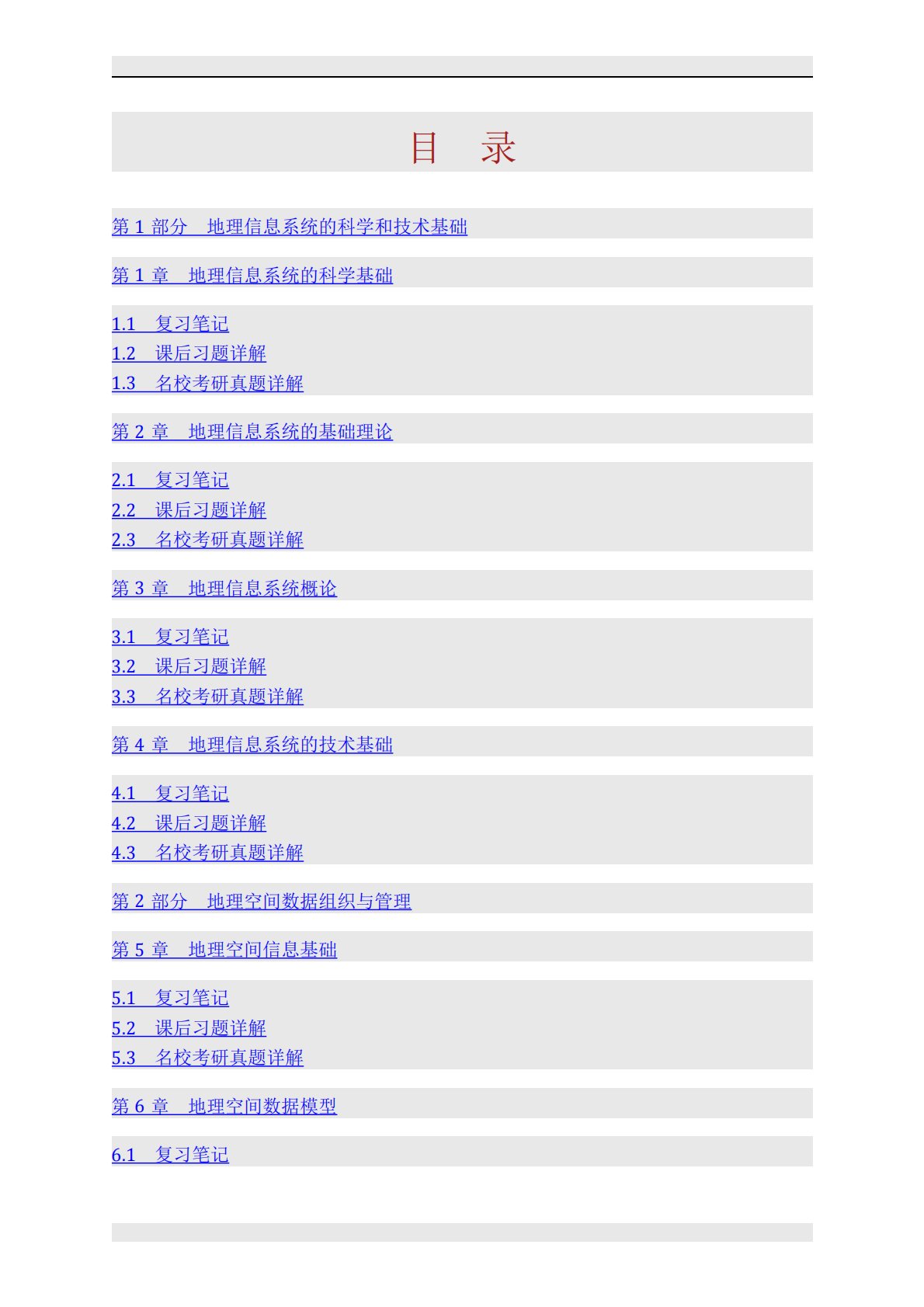 目录第1部分地理信息系统的科学和技术基础第1章地理信息系统的科学基础1.1复习笔记1.2课后习题详解1.3名校考研真题详解第2章地理信息系统的基础理论2.1复习笔记2.2课后习题详解2.3名校考研真题详解第3章地理信息系统概论3.1复习笔记3.2课后习题详解3.3名校考研真题详解第4章地理信息系统的技术基础4.1复习笔记4.2课后习题详解4.3名校考研真题详解第2部分地理空间数据组织与管理第5章地理空间信息基础5.1复习笔记5.2课后习题详解5.3名校考研真题详解第6章地理空间数据模型6.1复习笔记6.2课后习题详解6.3名校考研真题详解第7章地理空间数据结构7.1复习笔记7.2课后习题详解7...