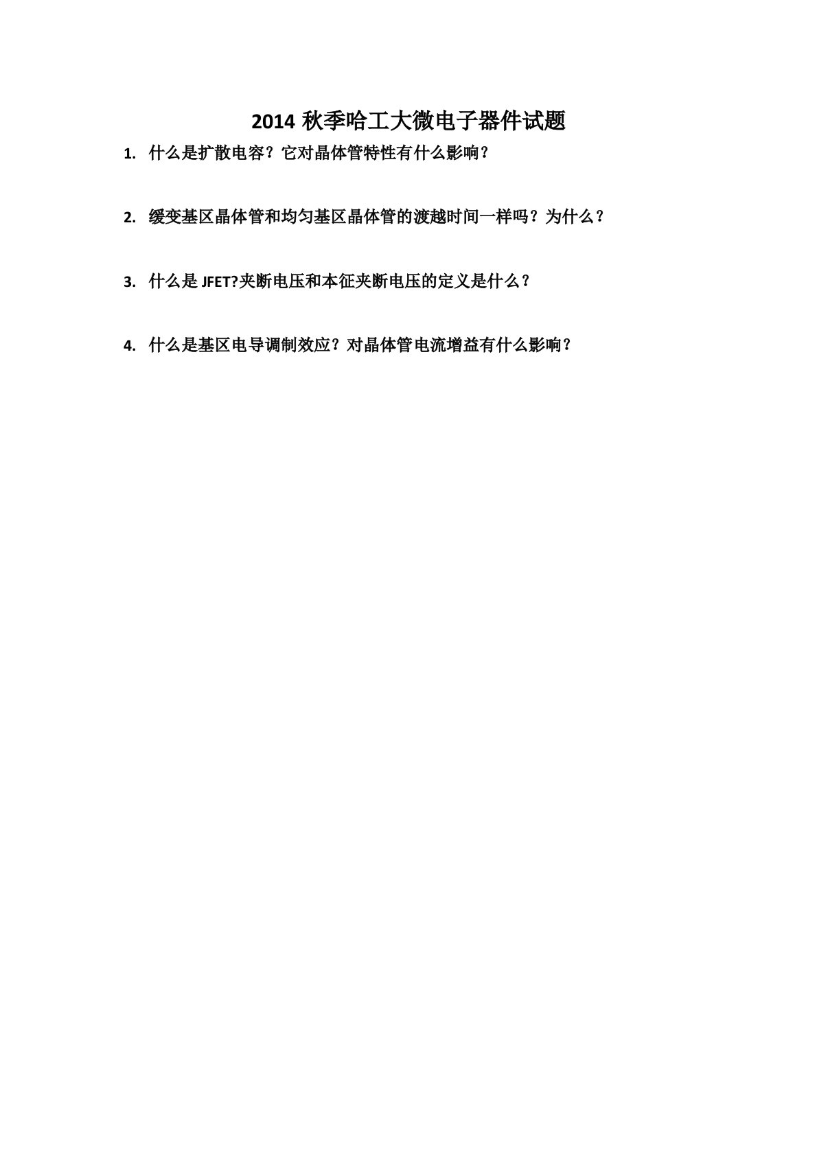 哈尔滨工业大学00122微电子学与固体电子学和集成电路工程微电子器件2014年秋季试题.doc