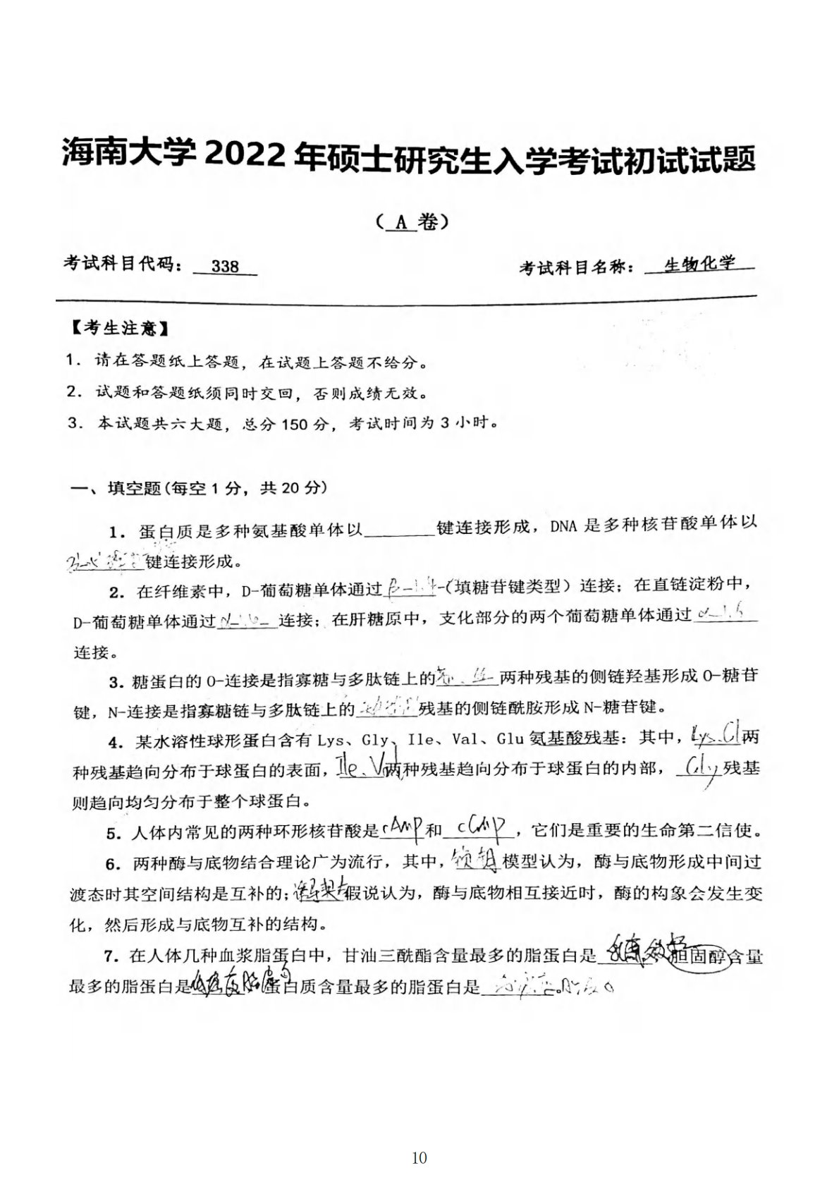 海南大学338生物化学2022年真题A