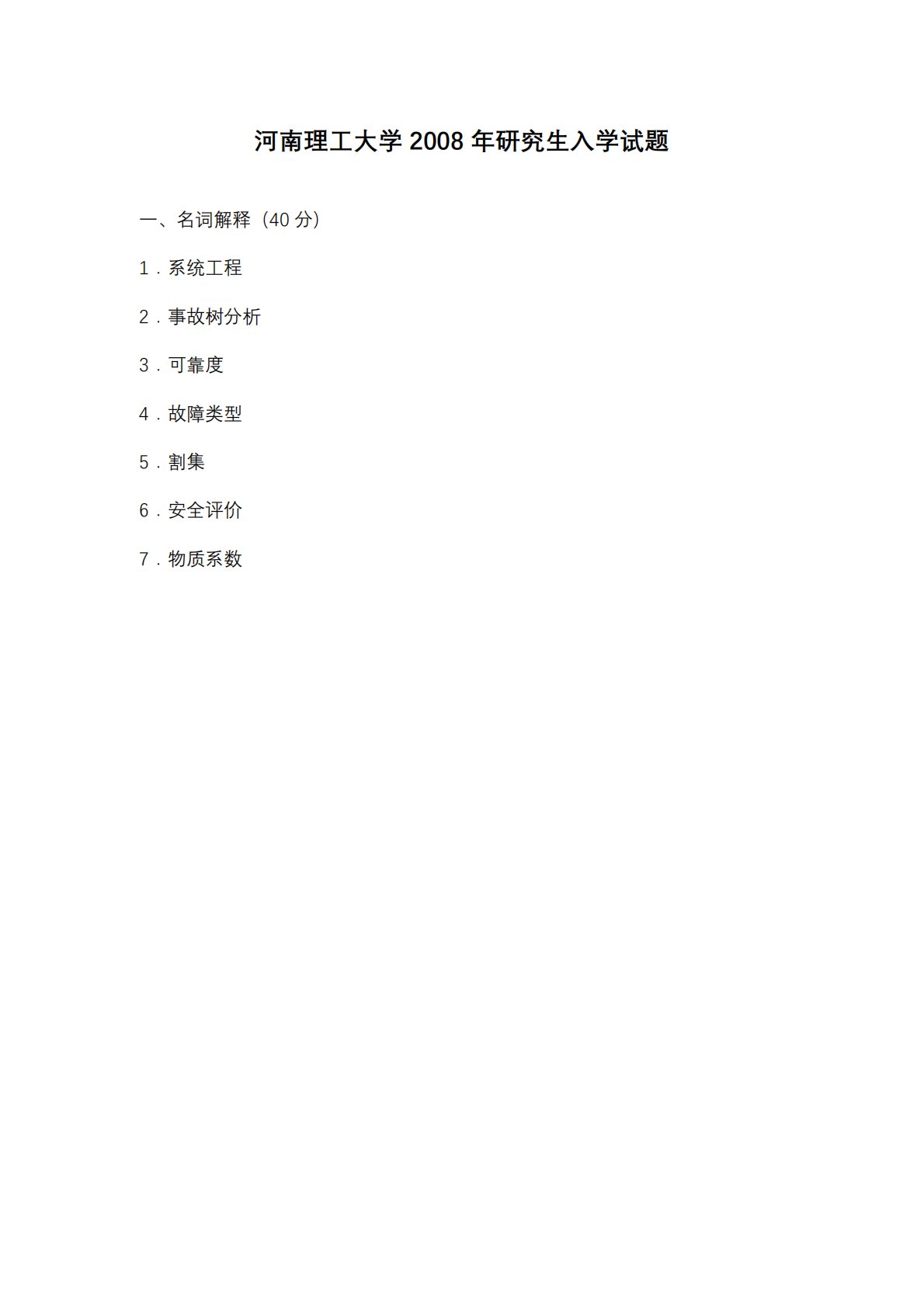 河南理工大学801安全系统工程2008年真题
