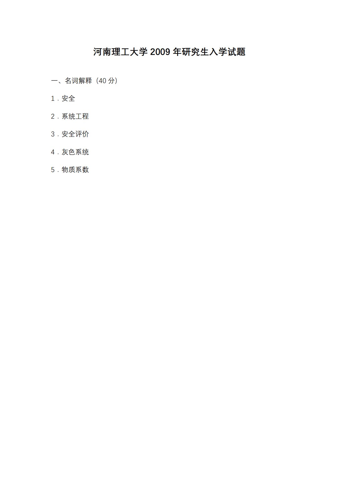 河南理工大学801安全系统工程2009年真题