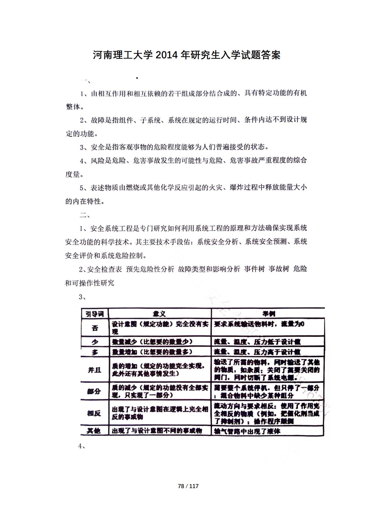 河南理工大学801安全系统工程2014年真题答案