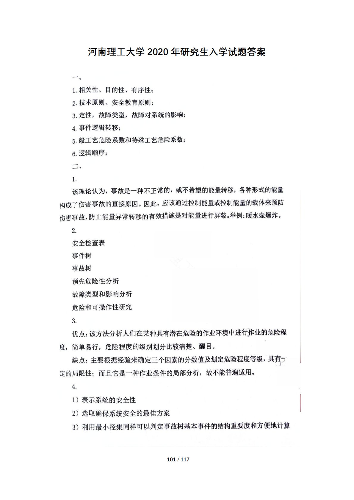 河南理工大学801安全系统工程2020年真题答案