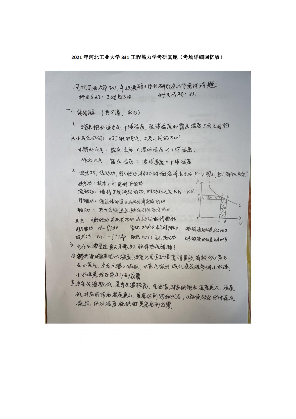 2021年河北工业大学831工程热力学考研真题(考场详细回忆版)百校文库—海量高校资料共享库百校文库是一个线上大学生专业学习资料共享平台,致力于通过用户自主上传与分享,打造一个涵盖各大高校、各学科门类的免费资源中心。平台已积累50万+套历年真题与100万+条学习文档,覆盖绝大多数高校专业,所有资料均由各大高校学生自主上传。✅资料透明,直观预览新增全站资料目录功能,所有资源分类清晰、一目了然。访问在线目录,即可快速浏览平台资源全貌,了解资料覆盖范围。点击查看实时更新的资源总览:【百校文库最新资料目录】✅严格审核,保障基础质量为确保内容可用性,所有用户上传资料均经过基础格式与内容审核,如有任何问题...
