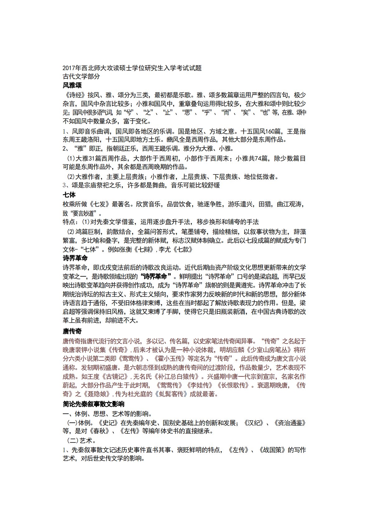 西北师范大学618中国文学2017年真题答案