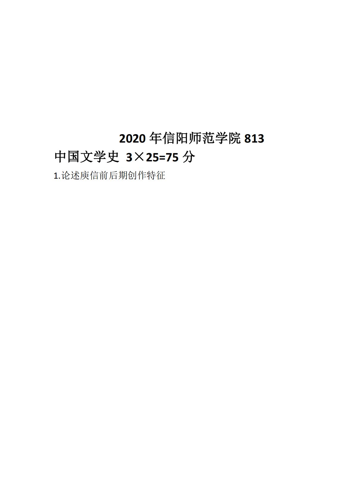 信阳师范大学823中国语言文学基础2020年真题(中国古代文学史)