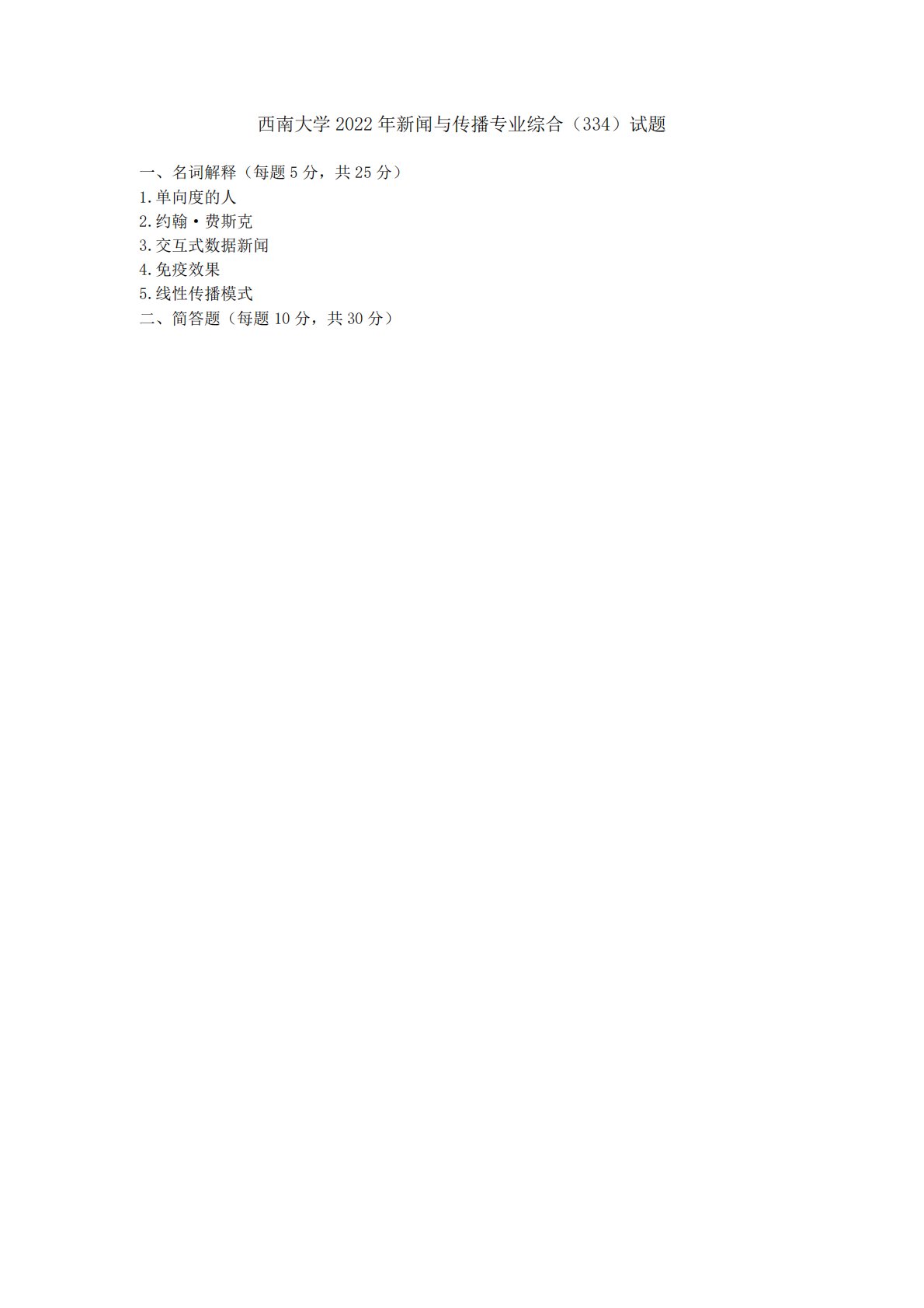西南大学334新闻与传播专业综合能力2022年真题