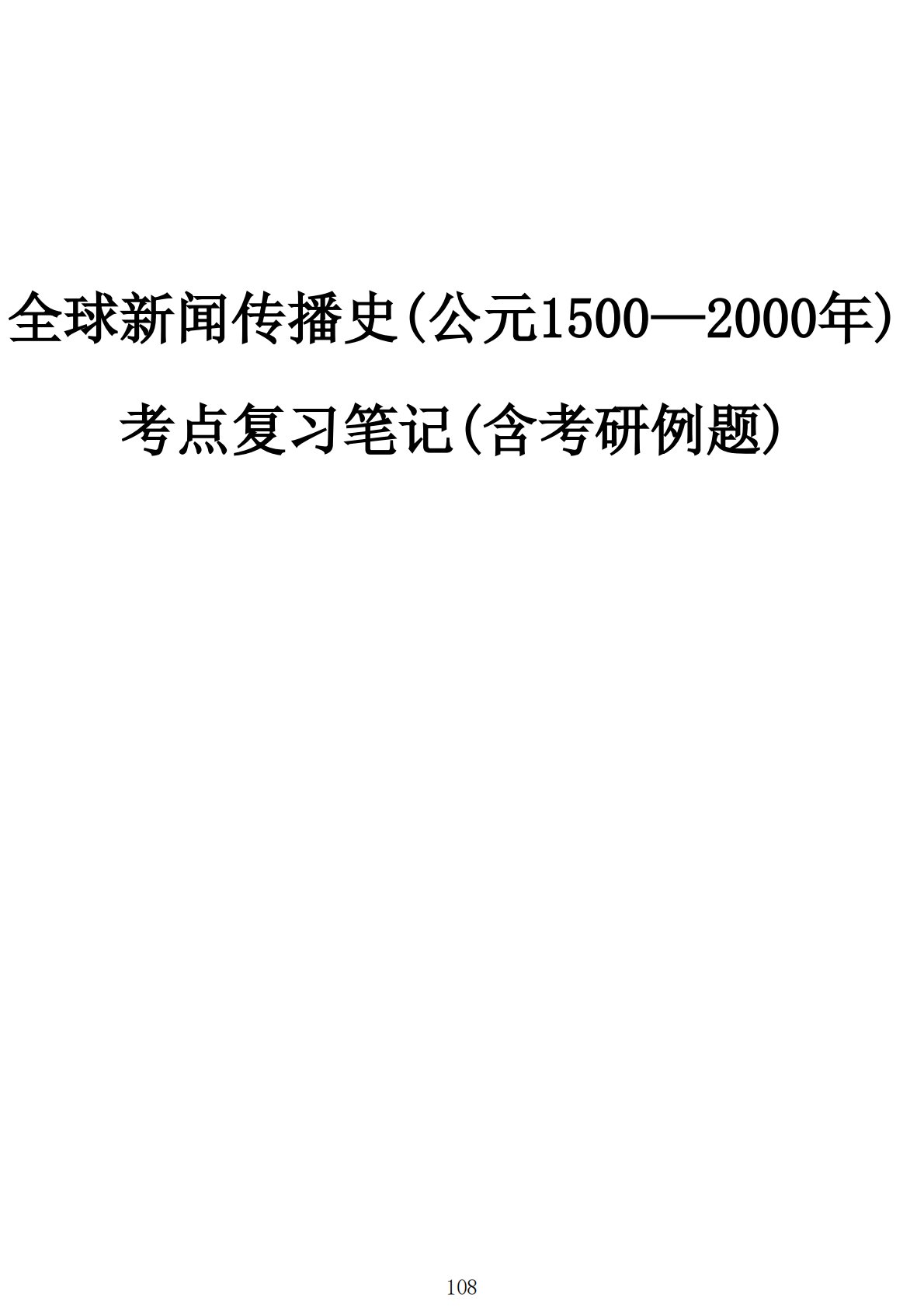 西南政法大学810新闻与传播专业基础全球新闻传播史(公元1500—2000年)考点复习笔记(含考研例题)