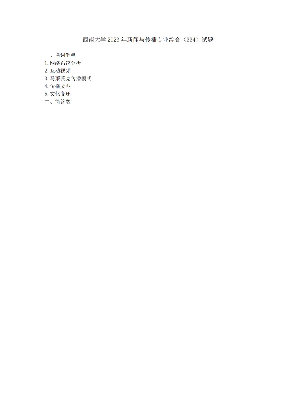 西南大学334新闻与传播专业综合能力2023年真题