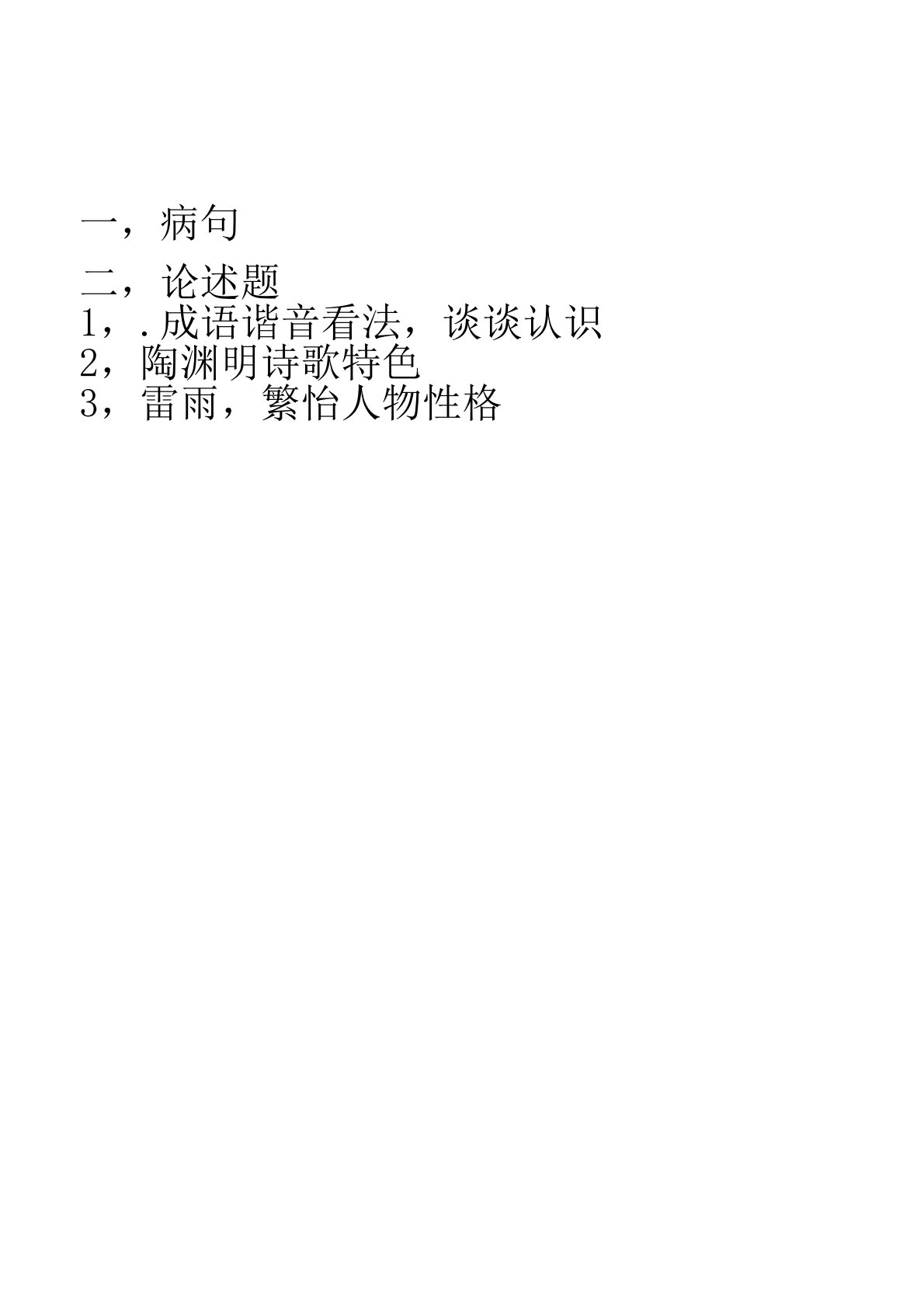 Ò»£¬²¡¾ä¶þ£¬ÂÛÊöÌâ1£¬.³ÉÓïгÒô¿´·¨£¬Ì¸Ì¸ÈÏʶ2£¬ÌÕÔ¨Ã÷Ê«¸èÌØÉ«3£¬À×Ó꣬·±âùÈËÎïÐÔ¸ñÒ»£¬²¡¾ä¶þ£¬ÂÛÊöÌâ1£¬.³ÉÓïгÒô¿´·¨£¬Ì¸Ì¸ÈÏʶ2£¬ÌÕÔ¨Ã÷Ê«¸èÌØÉ«3£¬À×Ó꣬·±âùÈËÎïÐÔ¸ñ4£¬Î÷Óμǣ¬Öí°Ë½äÈËÎïÐÎÏó·ÖÎöÈý£¬±êµã£¬·Ò룬³þׯÍõËÄ£¬ê°¿Ë¼Ò£¬¡¶ÀÏÂí¡·ÉÍÎö²¡¾äÎå¸ö百校文库—海量高校资料共享库百校文库是一个线上大学生专业学习资料共享平台,致力于通过用户自主上传与分享,打...