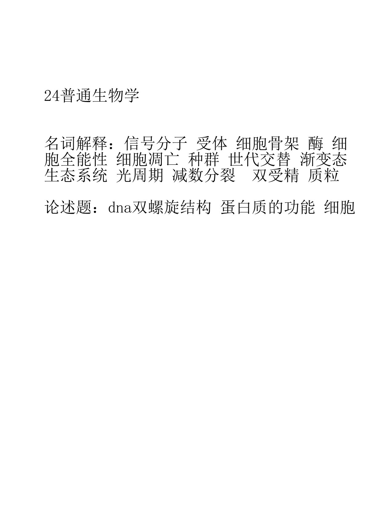 延安大学824普通生物学2024年真题回忆版