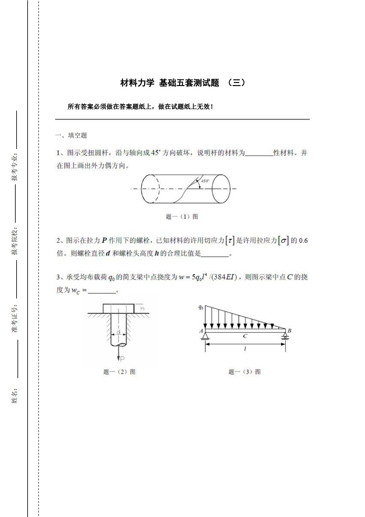 材料力学基础五套测试题(三)所有答案必须做在答案题纸上,做在试题纸上无效!一、填空题姓名:准考证号:报考院校:报考专业:二、选择题三、计算题12百校文库—海量高校资料共享库百校文库是一个线上大学生专业学习资料共享平台,致力于通过用户自主上传与分享,打造一个涵盖各大高校、各学科门类的免费资源中心。平台已积累50万+套历年真题与100万+条学习文档,覆盖绝大多数高校专业,所有资料均由各大高校学生自主上传。✅资料透明,直观预览新增全站资料目录功能,所有资源分类清晰、一目了然。访问在线目录,即可快速浏览平台资源全貌,了解资料覆盖范围。点击查看实时更新的资源总览:【百校文库最新资料目录】✅严格审核,保障...