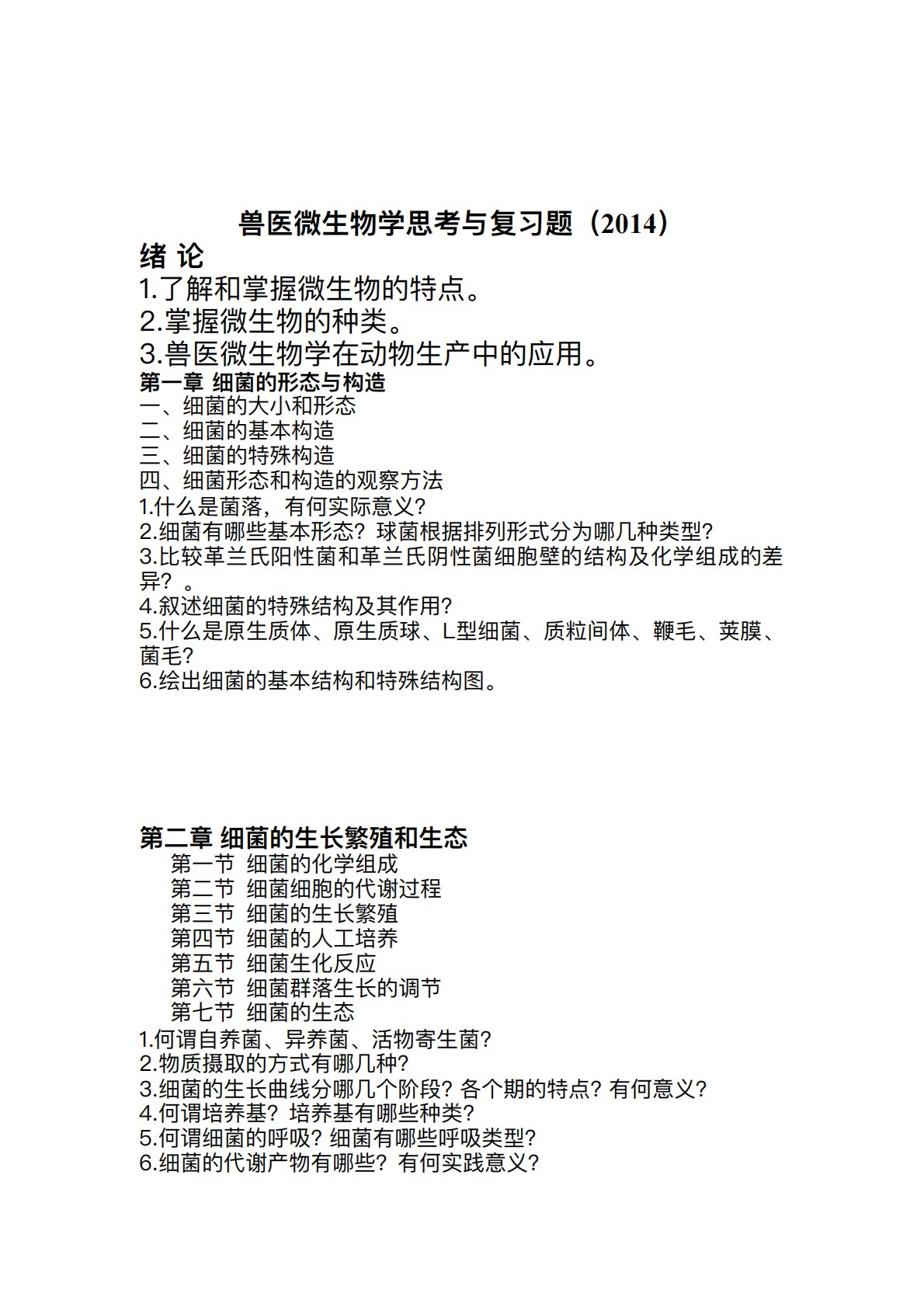 延边大学860兽医微生物学与免疫学(专硕)兽医微生物学思考与复习题2014