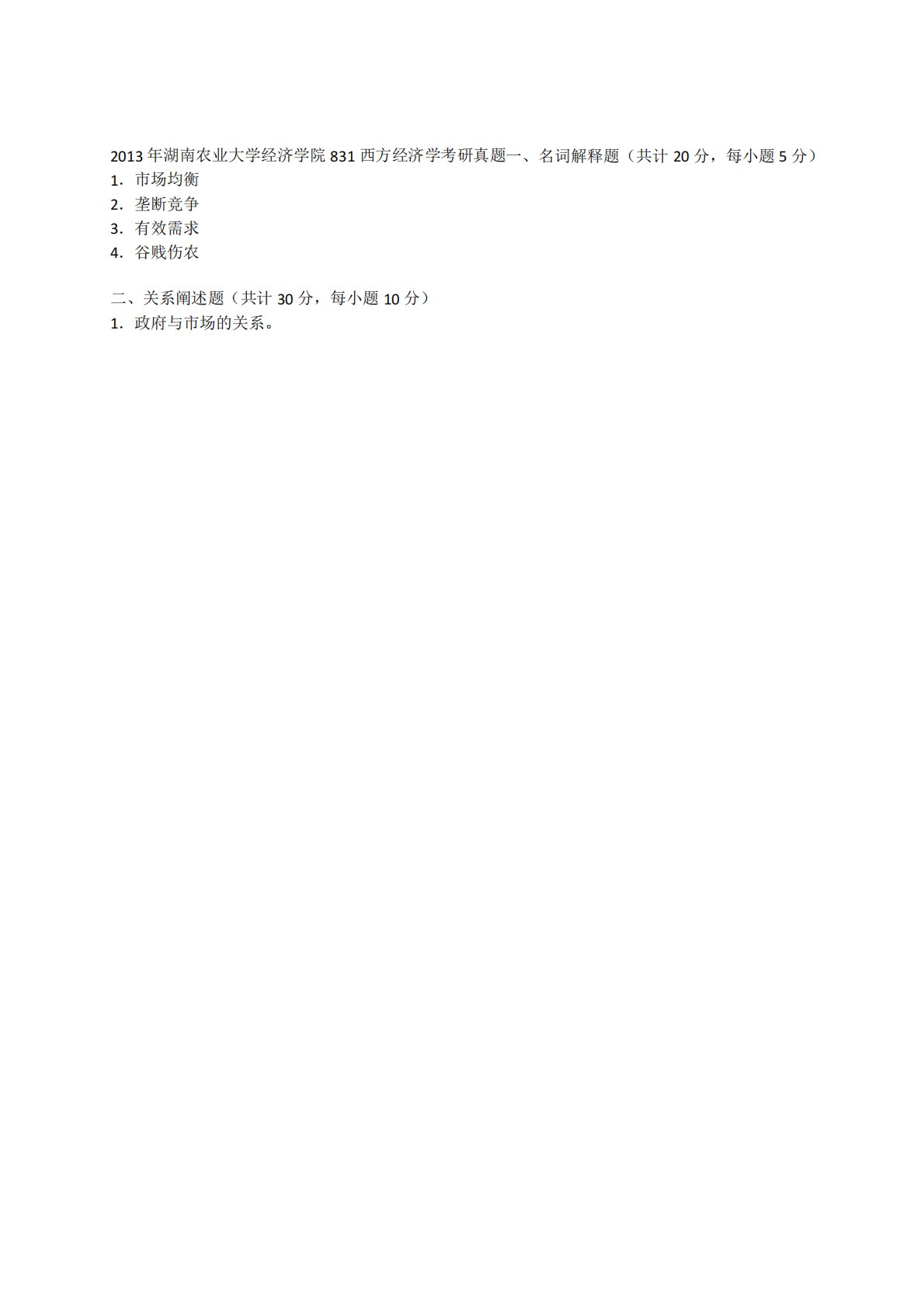 湖南农业大学830西方经济学2013年真题