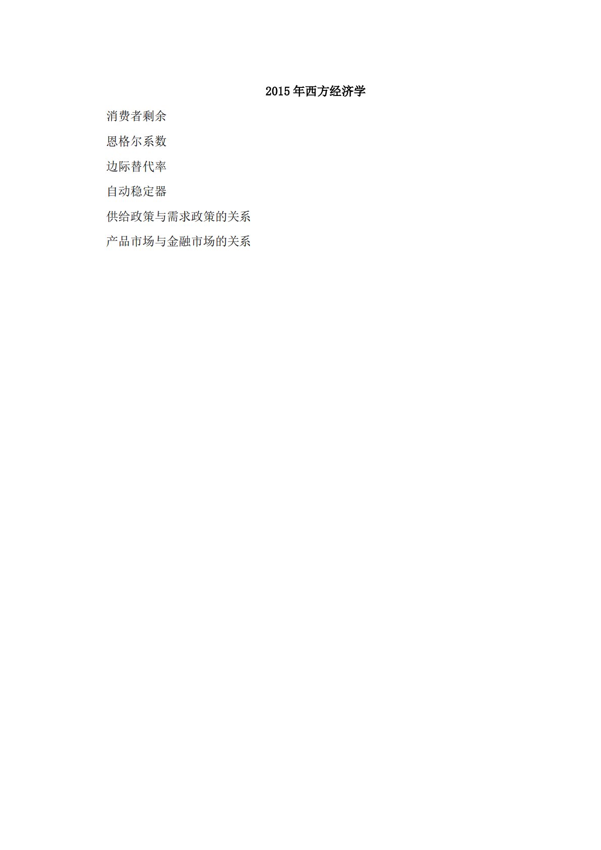 2015年西方经济学消费者剩余恩格尔系数边际替代率自动稳定器供给政策与需求政策的关系产品市场与金融市场的关系2015年西方经济学消费者剩余恩格尔系数边际替代率自动稳定器供给政策与需求政策的关系产品市场与金融市场的关系通货膨胀与充分就业的关系促进竞争为什么会增进社会福利?市场经济为什么需要政府的行为?技术进步为什么将引致经济增长?沪港通对中国资本市场有何影响?中国目前为什么要强调对外投资?食品安全为什么总难以得到保障?中国当前的宏观调控为什么特别强调“预期管理”?百校文库—海量高校资料共享库百校文库是一个线上大学生专业学习资料共享平台,致力于通过用户自主上传与分享,打造一个涵盖各大高校、各学科门...