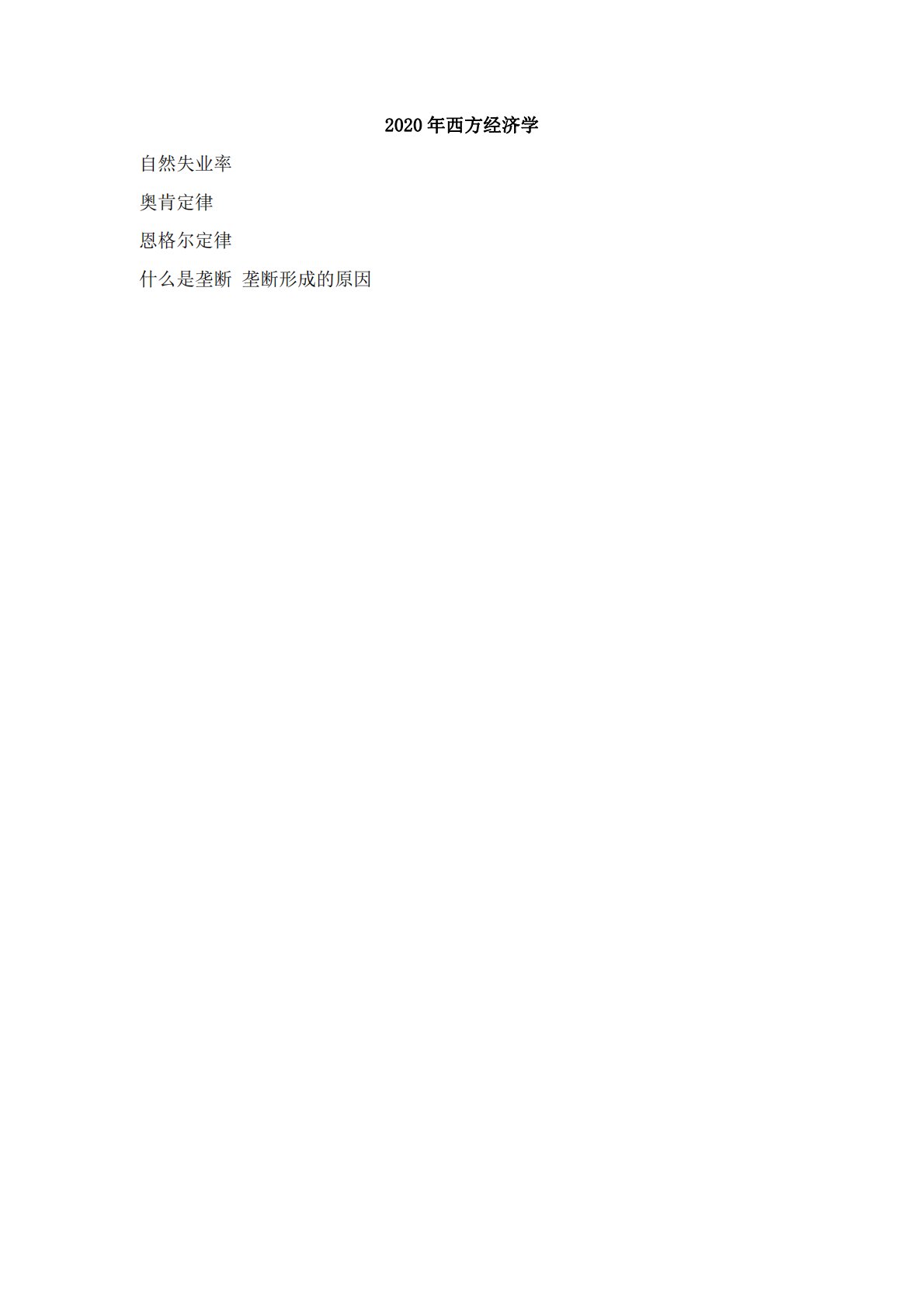 2020年西方经济学自然失业率奥肯定律恩格尔定律什么是垄断垄断形成的原因2020年西方经济学自然失业率奥肯定律恩格尔定律什么是垄断垄断形成的原因什么是货币政策?货币政策工具有哪些需求价格弹性是什么?影响需求价格弹性的因素?劳动供给曲线为什么是向后弯曲?分析比较三大总供给曲线经济增长公式并分析其对经济增长的影响市场失灵有哪些表现怎样治理?论述分析中美贸易战的原因和我国应怎样应对百校文库—海量高校资料共享库百校文库是一个线上大学生专业学习资料共享平台,致力于通过用户自主上传与分享,打造一个涵盖各大高校、各学科门类的免费资源中心。平台已积累50万+套历年真题与100万+条学习文档,覆盖绝大多数高校专...