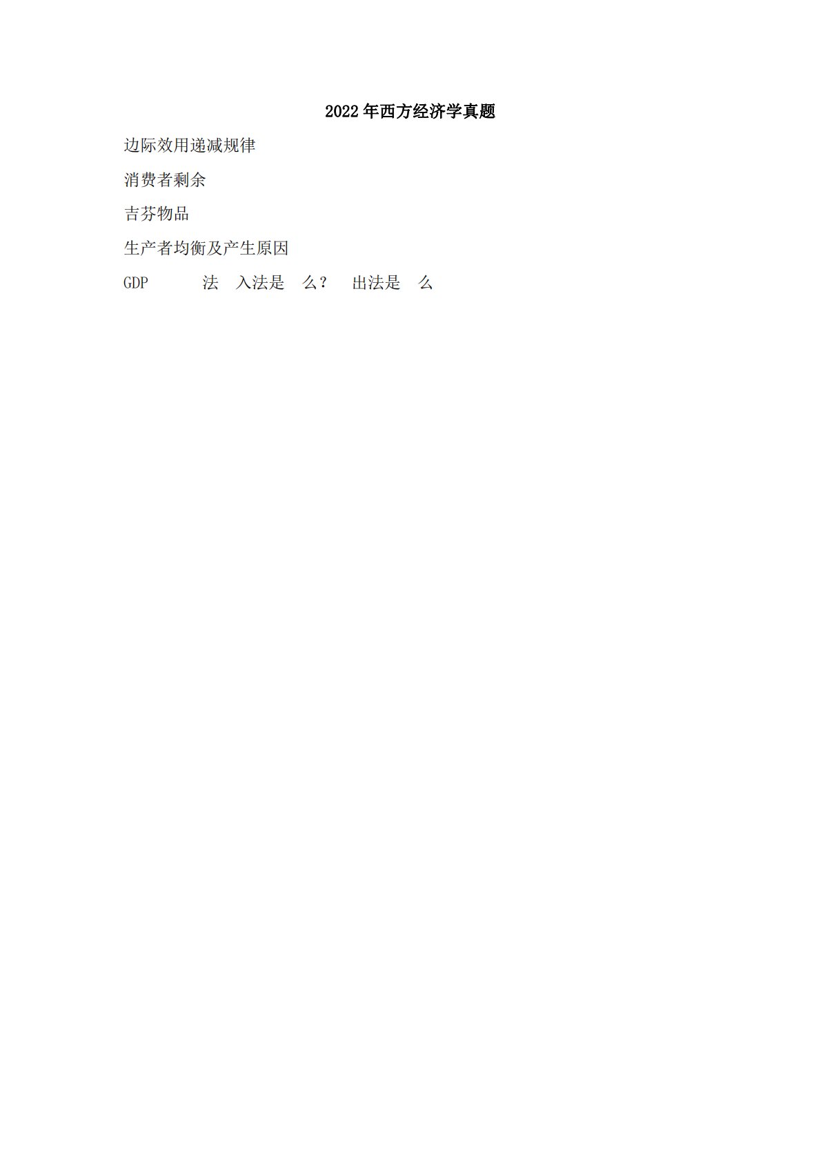 2022年西方经济学真题边际效用递减规律消费者剩余吉芬物品生产者均衡及产生原因GDP法入法是么?出法是么2022年西方经济学真题边际效用递减规律消费者剩余吉芬物品生产者均衡及产生原因GDP计算方法收入法是什么?支出法是什么菲利普斯曲线长期与短期自然垄断企业可以用边际定价?原因一二三价格歧视完全竞争市场需求曲线右下倾斜原因,请用效用论分析根据2021中央经济会议,请你谈谈你对政府宏观调控的理解外部性是什么?产生外部性的原因和解决措施有哪些百校文库—海量高校资料共享库百校文库是一个线上大学生专业学习资料共享平台,致力于通过用户自主上传与分享,打造一个涵盖各大高校、各学科门类的免费资源中心。平台已积...