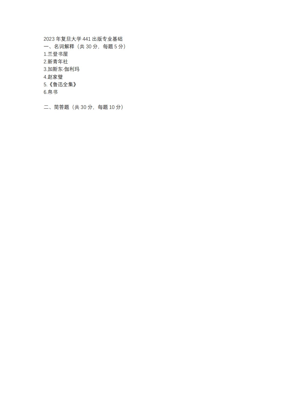 复旦大学441出版专业基础2023年真题回忆版