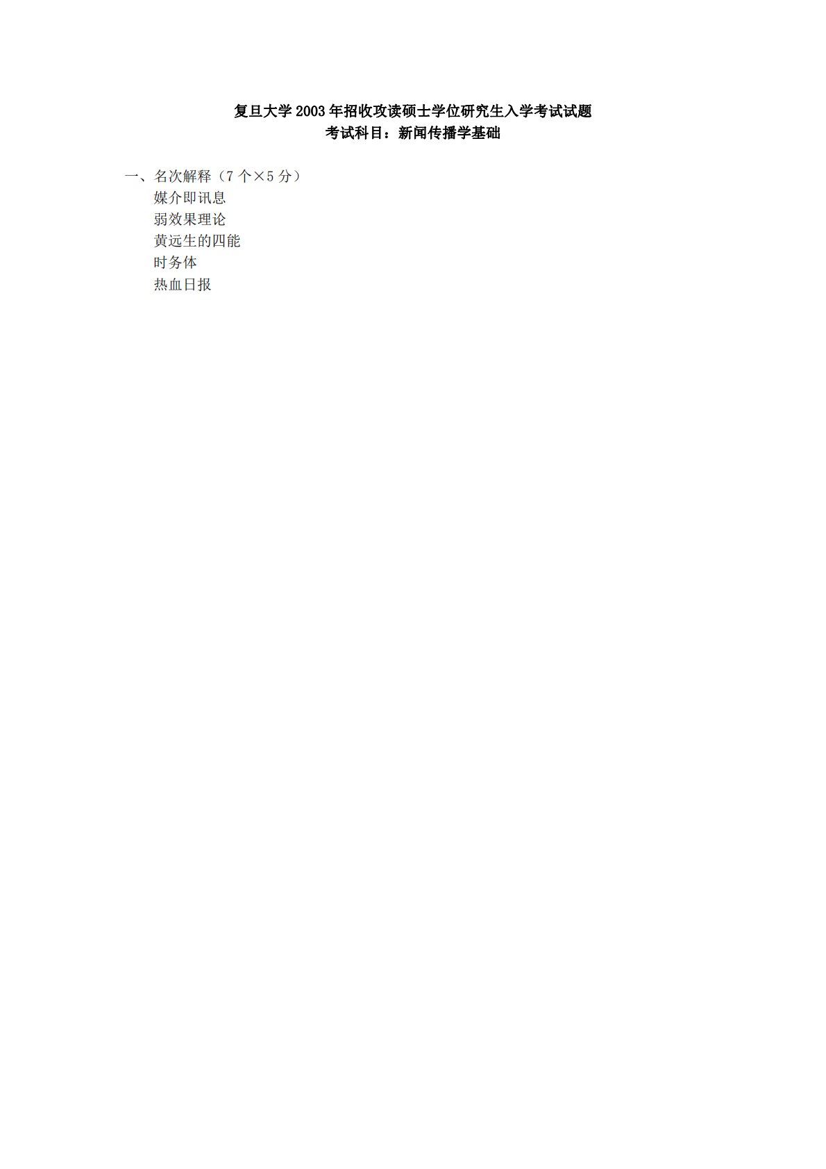 复旦大学714新闻传播学基础2003年真题