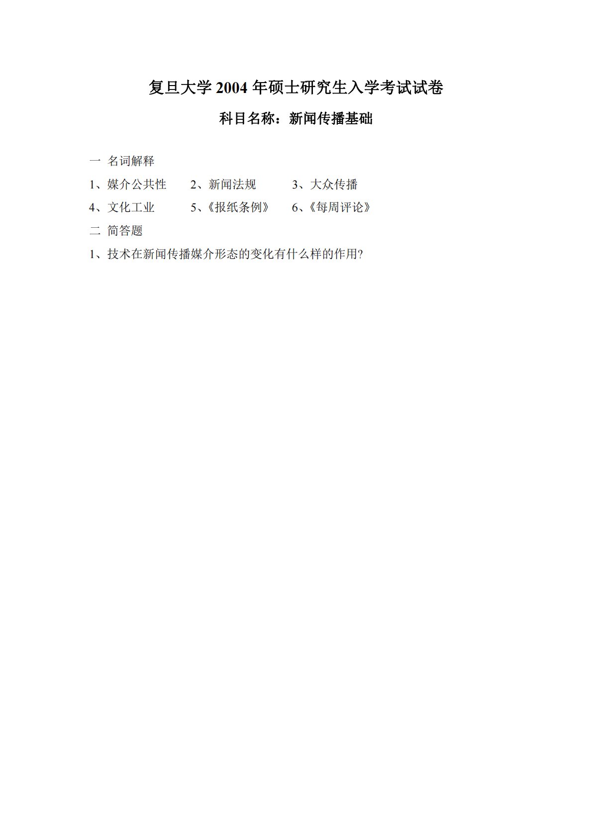 复旦大学714新闻传播学基础2004年真题