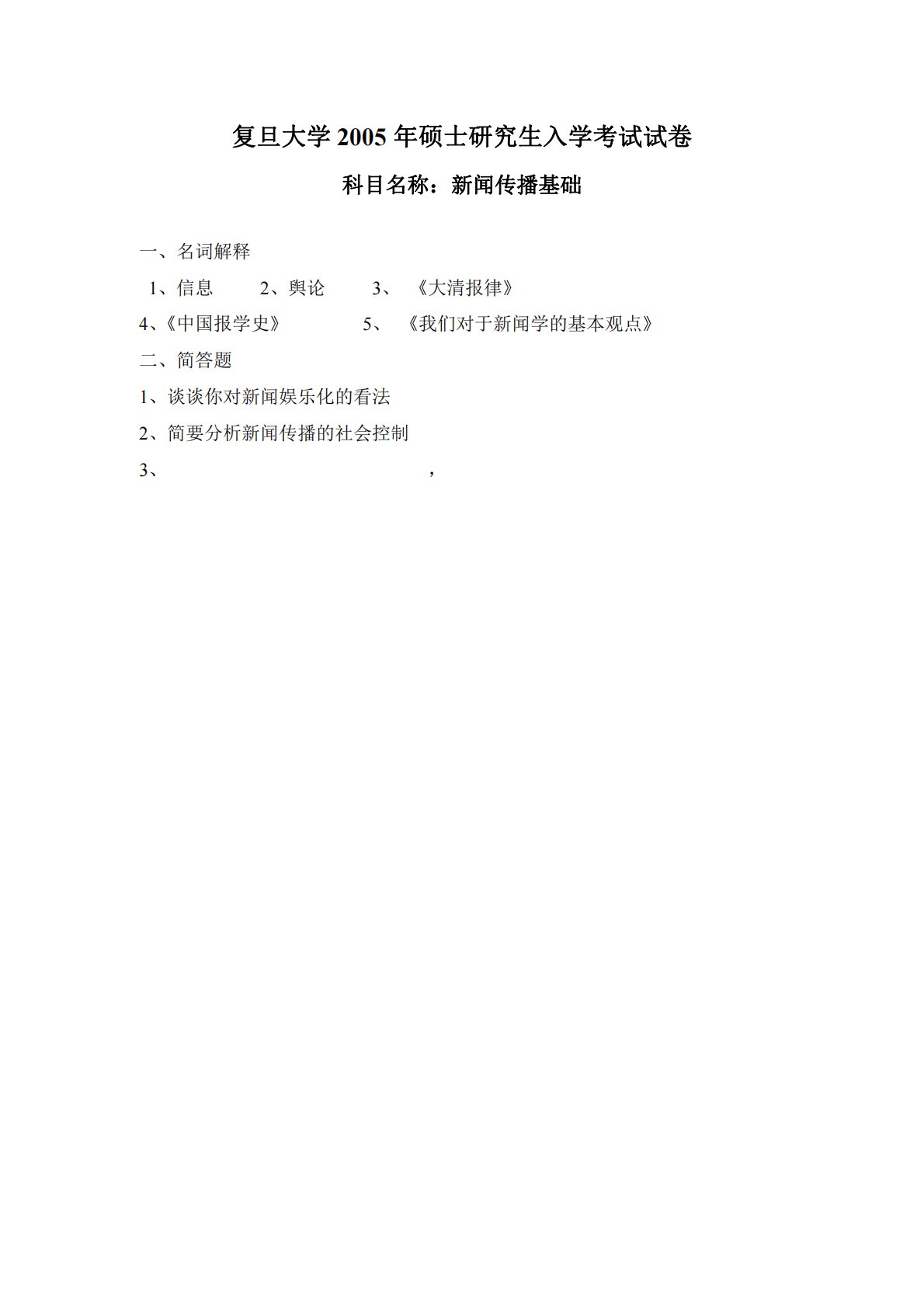 复旦大学714新闻传播学基础2005年真题