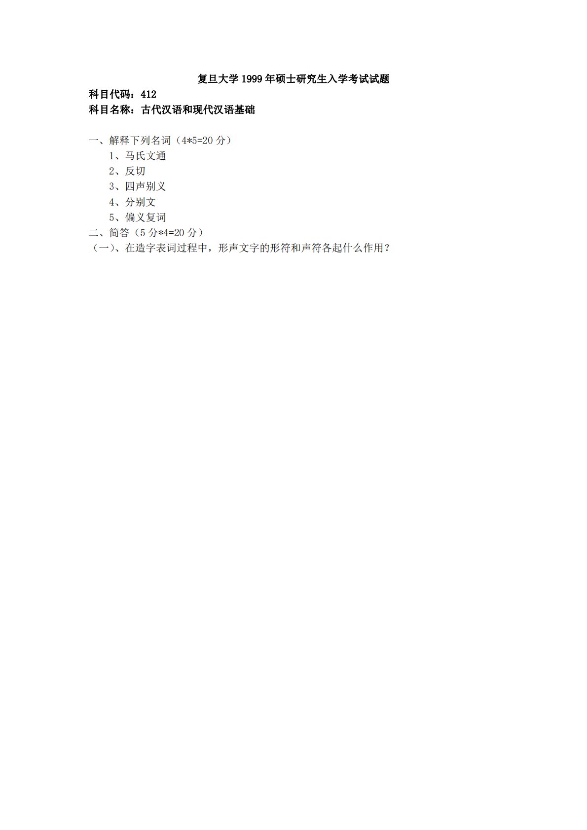 复旦大学807古代汉语和现代汉语基础1999年真题