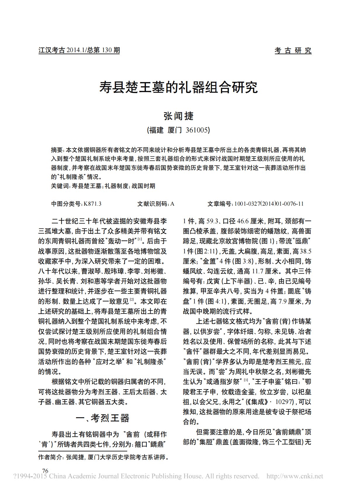 黑龙江大学735考古学专业基础寿县楚王墓的礼器组合研究