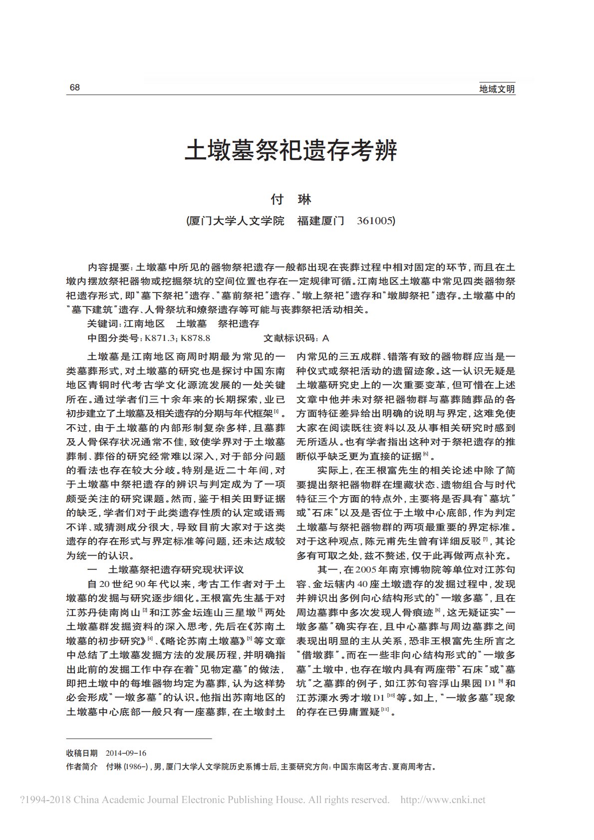 ÍÁ¶ÕĹ¼ÀìëÒŴ濼±æÊÕ¸åÈÕÆÚ2014-09-16×÷Õß¼ò½é¸¶ÁÕ£¨1986-£©£¬ÄУ¬ÏÃÃÅ´óѧÈËÎÄѧԺÀúʷϵ²©Ê¿ºó£¬Ö÷ÒªÑо¿·½Ïò£ºÖйú¶«ÄÏÇø¿¼¹Å¡¢ÏÄÉÌÖÜ¿¼¹Å¡£ÄÚÈÝÌáÒª£ºÍÁ¶ÕĹÖÐËù¼ûµÄÆ÷Îï¼ÀìëÒÅ´æÒ»°ã¶¼³öÏÖÔÚÉ¥Ôá¹ý³ÌÖÐÏà¶Ô¹Ì¶¨µÄ»·½Ú£¬¶øÇÒÔÚÍÁ¶ÕÄڰڷżÀìëÆ÷Îï»òÍÚ¾ò¼À¿ÓµÄ¿Õ¼äλÖÃÒ²´æÔÚÒ»¶¨¹æÂÉ¿ÉÑ¡£½ÄϵØÇøÍÁ¶ÕĹÖг£¼ûËÄÀàÆ÷Î...