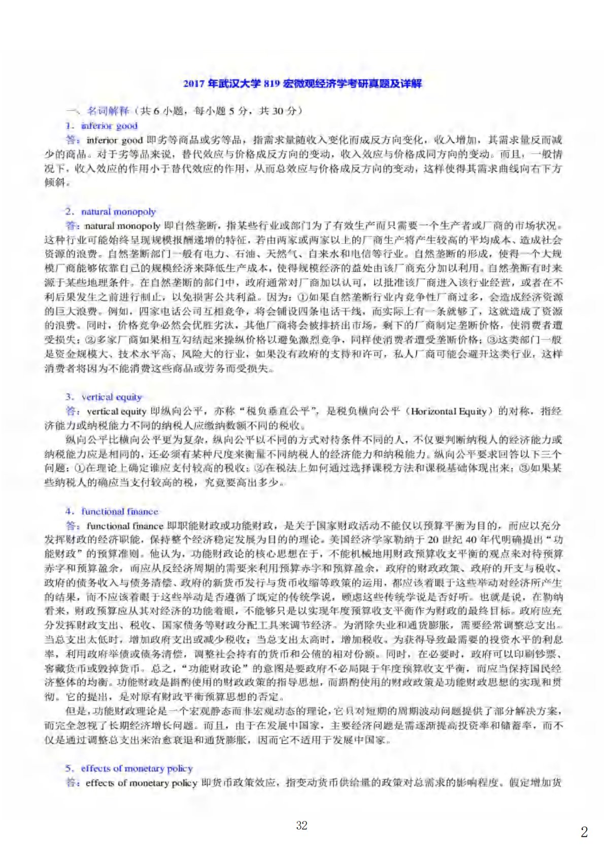 武汉大学819宏微观经济学2017年真题答案