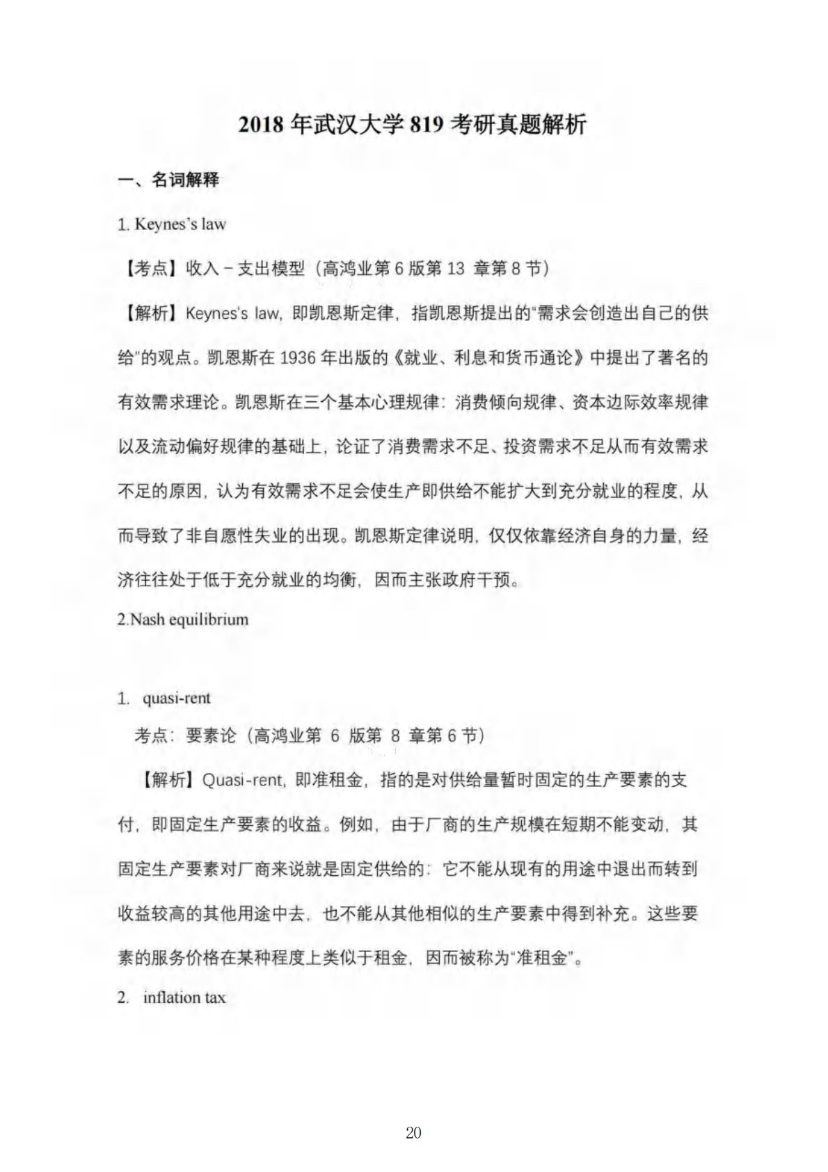 武汉大学819宏微观经济学2018年真题答案回忆版
