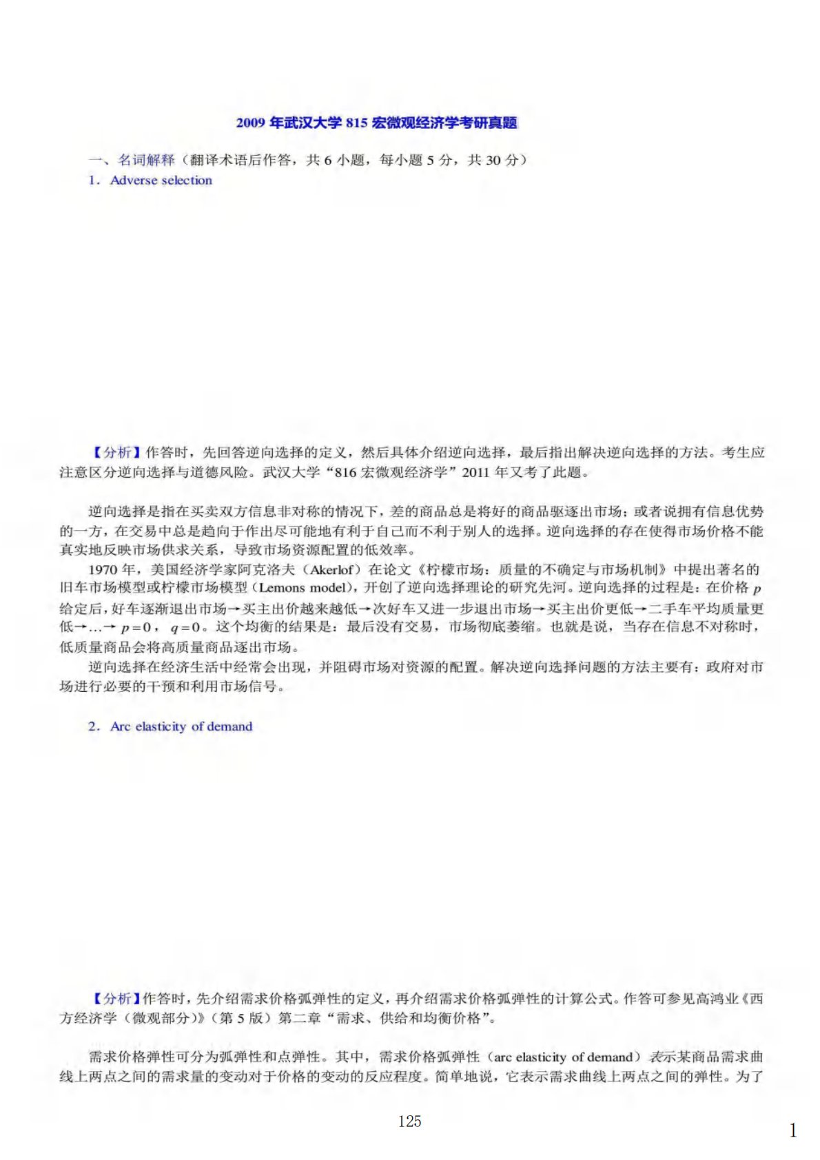 武汉大学819宏微观经济学2009年真题答案