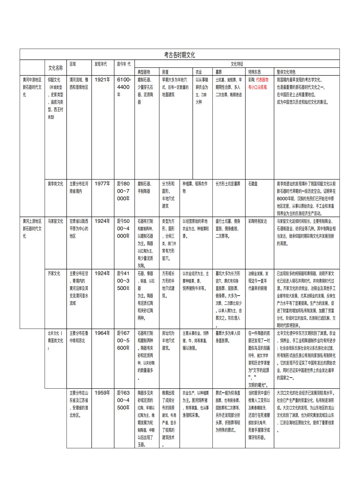 黑龙江大学735考古学专业基础重要的考古学文化列表