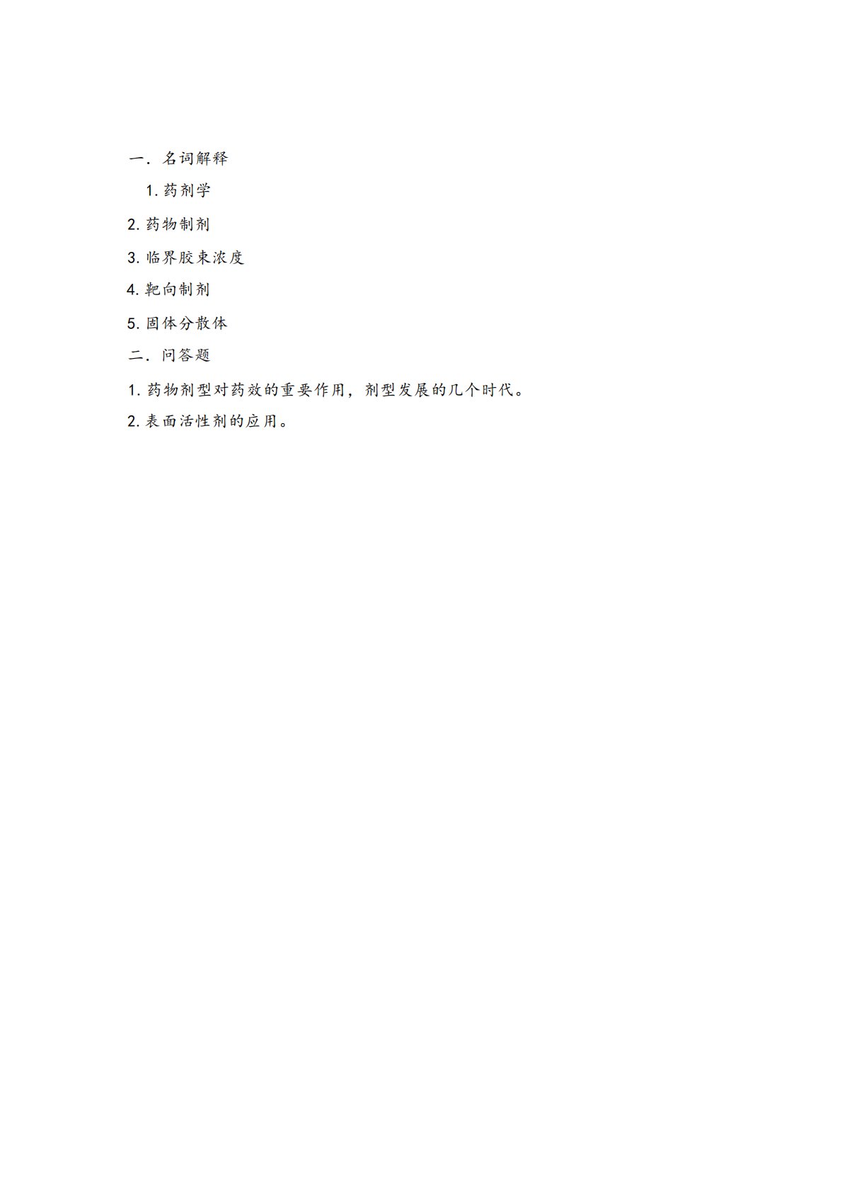 一.名词解释1.药剂学2.药物制剂3.临界胶束浓度4.靶向制剂5.固体分散体二.问答题1.药物剂型对药效的重要作用,剂型发展的几个时代。2.表面活性剂的应用。一.名词解释1.药剂学2.药物制剂3.临界胶束浓度4.靶向制剂5.固体分散体二.问答题1.药物剂型对药效的重要作用,剂型发展的几个时代。2.表面活性剂的应用。3.维生素C注射液【处方】(1)写出制备过程(2)根据维生素C的结构分析处方中其他成分的作用4.缓,控释制剂作用原理及方法。5.影响药物制剂稳定性的因素。6.某药物服用后生物利用度低,如何设计处方提高其生物利用度。百校文库—海量高校资料共享库百校文库是一个线上大学生专业学习资料共享平...