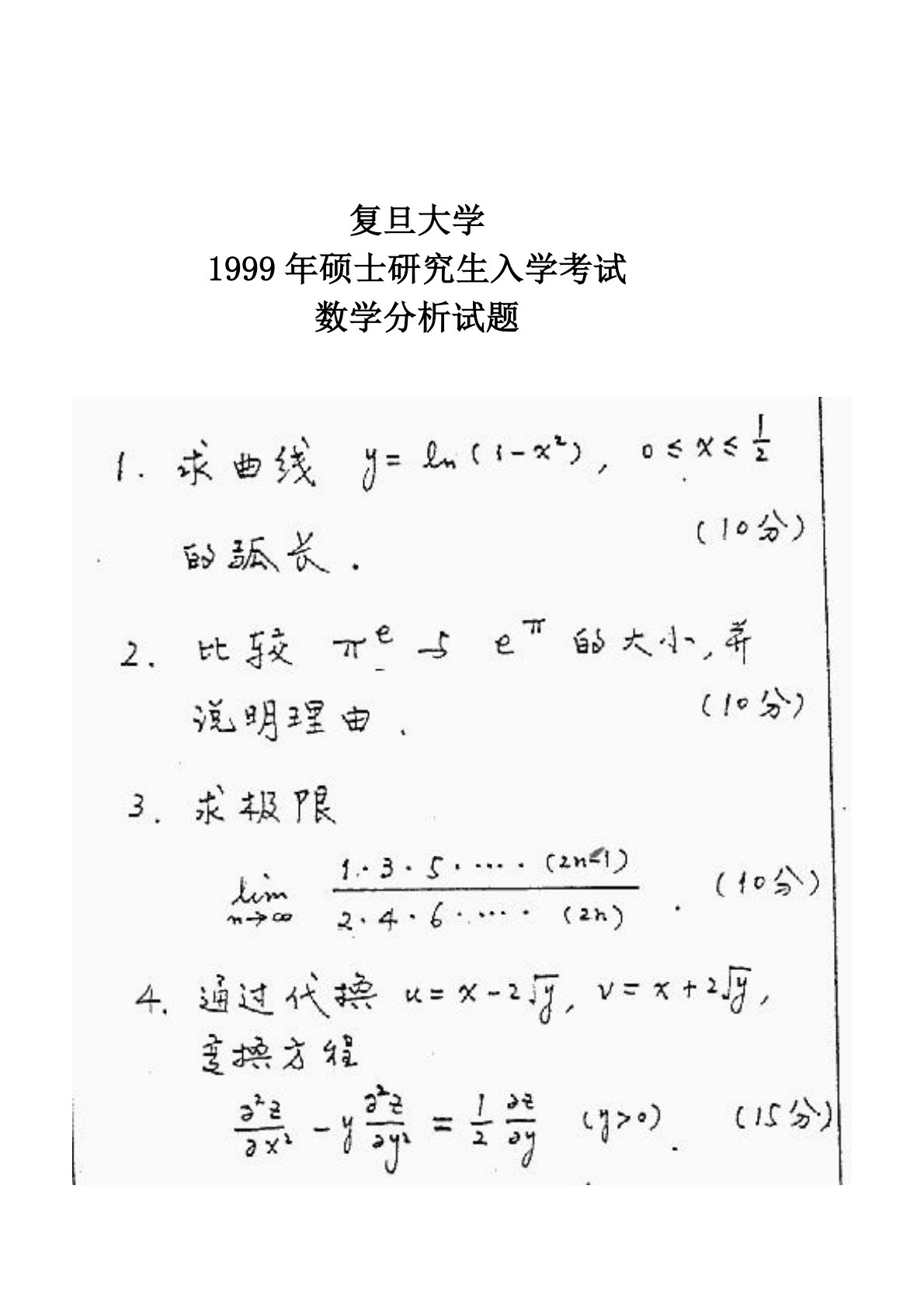 复旦大学719分析1999年真题手写版(数学分析).pdf