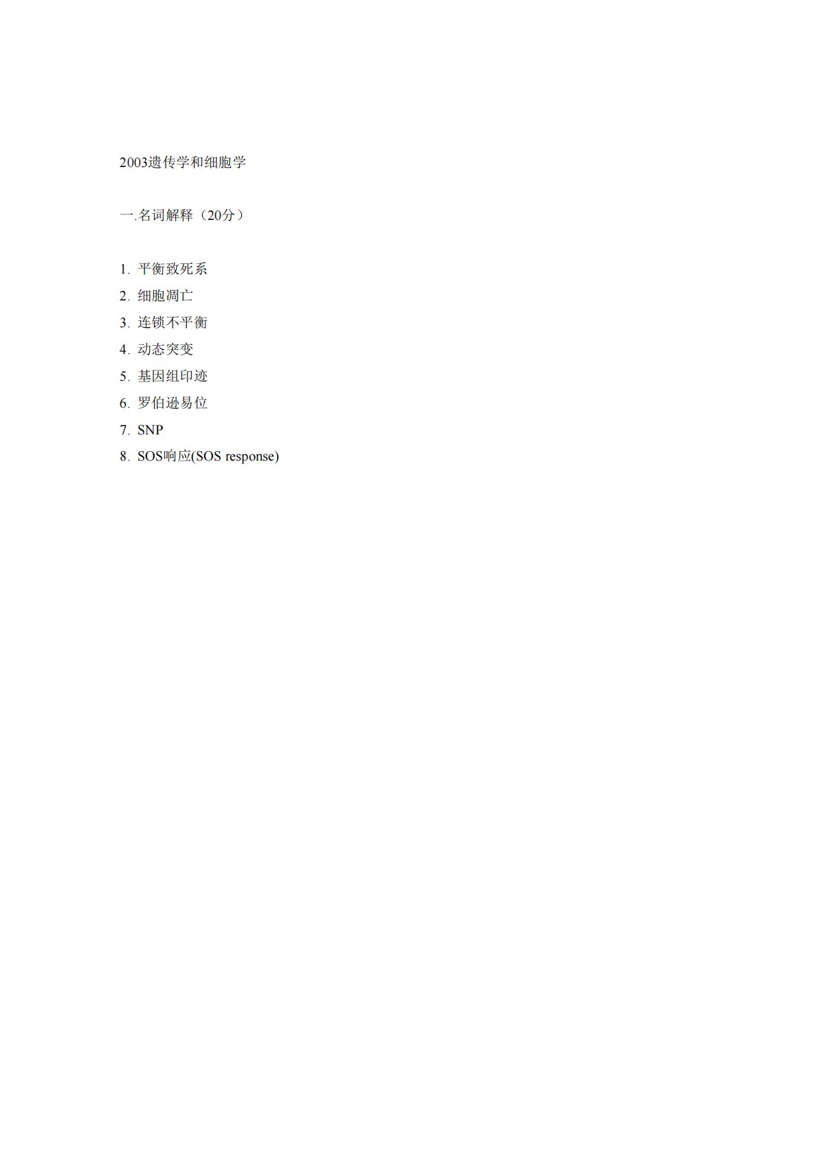 复旦大学873遗传学与细胞生物学2003年真题