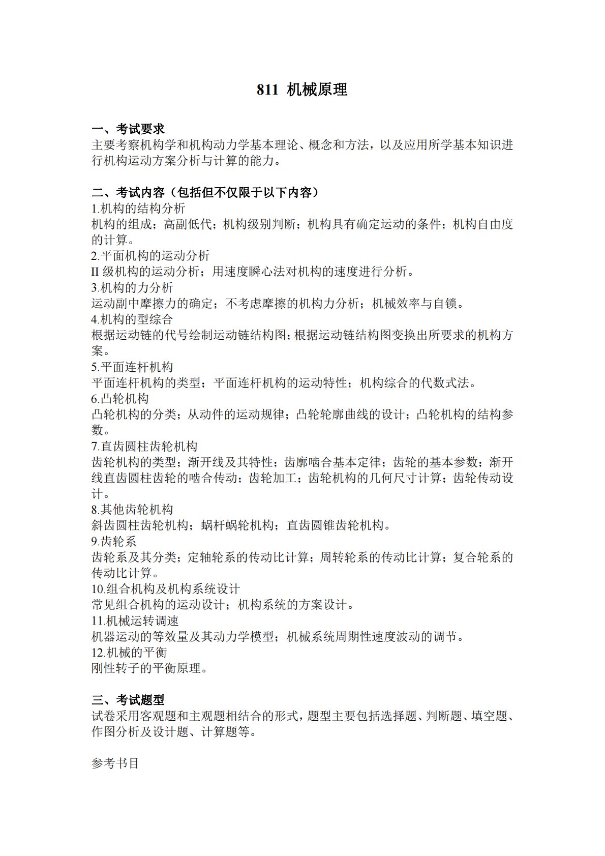 武汉科技大学811机械原理考试大纲