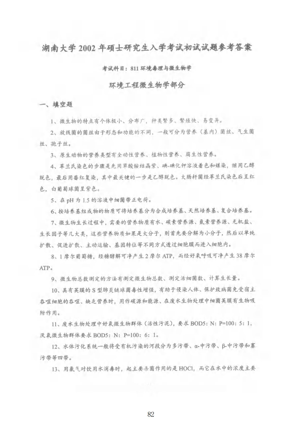 湖南大学811环境毒理与环境工程微生物综合2002年真题答案