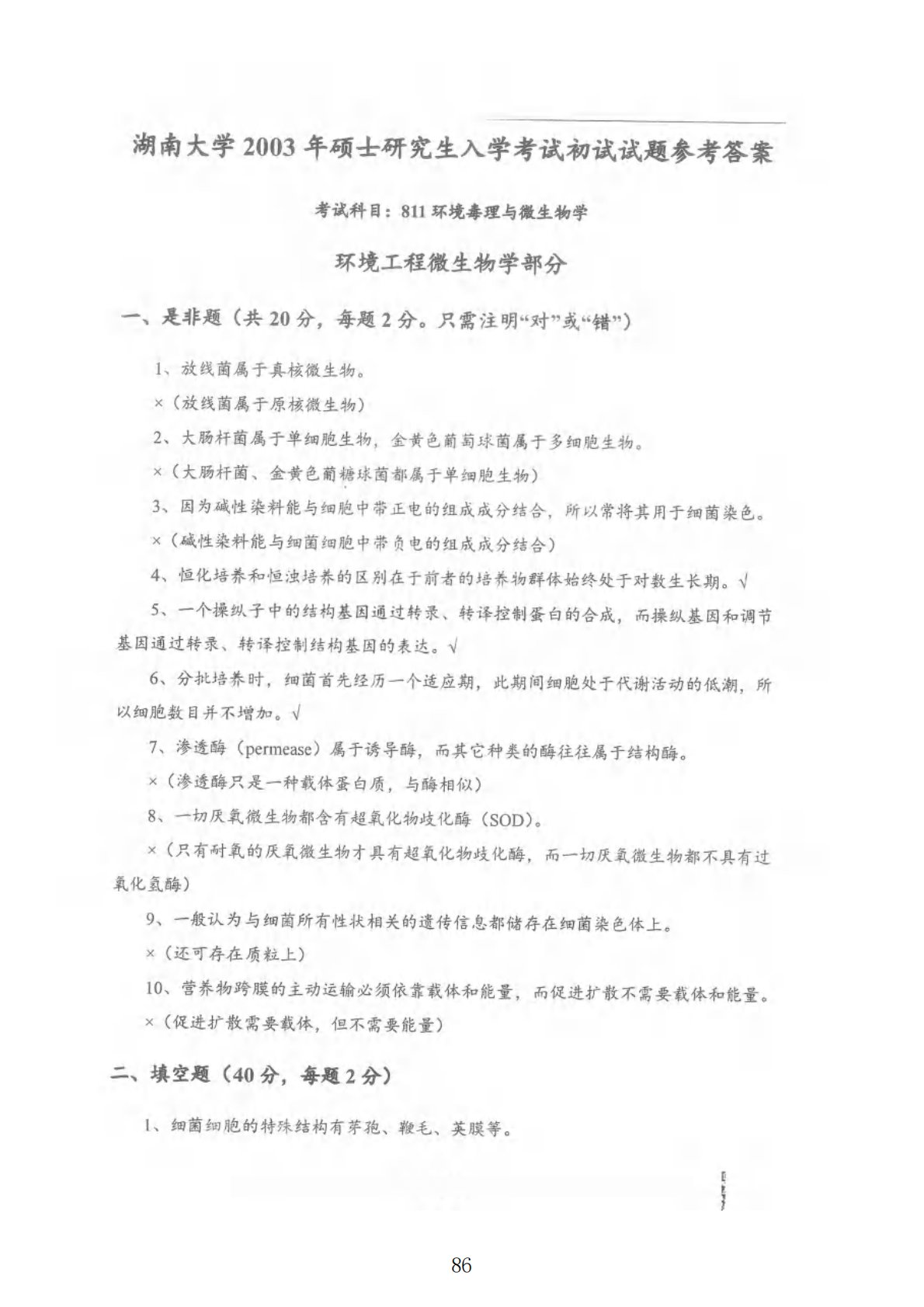 湖南大学811环境毒理与环境工程微生物综合2003年真题答案